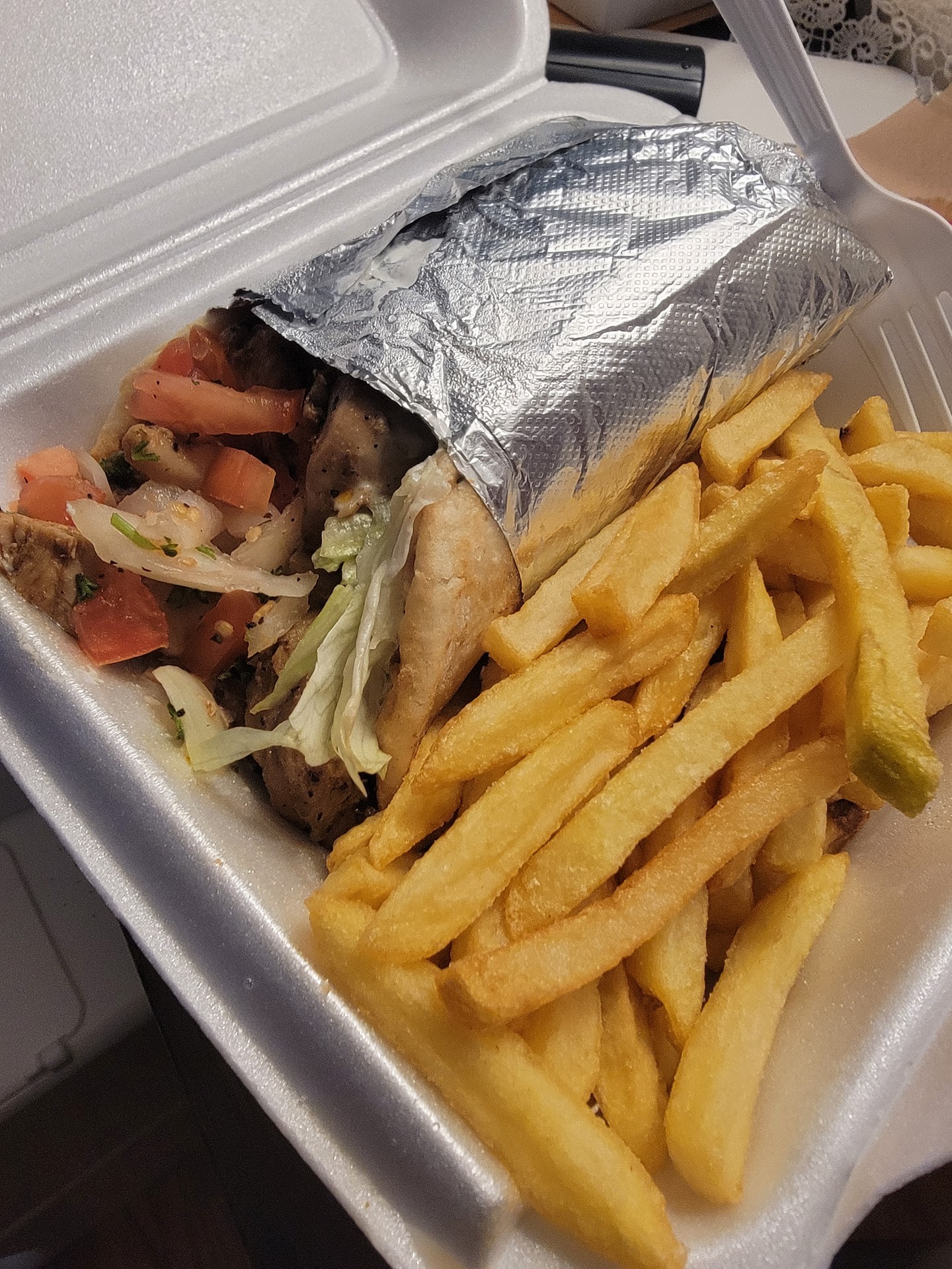 I had the chicken and lamb gyros! The lamb gyro was my favorite! Definitely the best gyro I ever had. I always get an extra side of tzatziki sauce, so good! The fries are good as well and you get a nice size portion. I am completely stuffed after I finish eating. Also the two brothers in there are cool as hell, always great customer service and good...