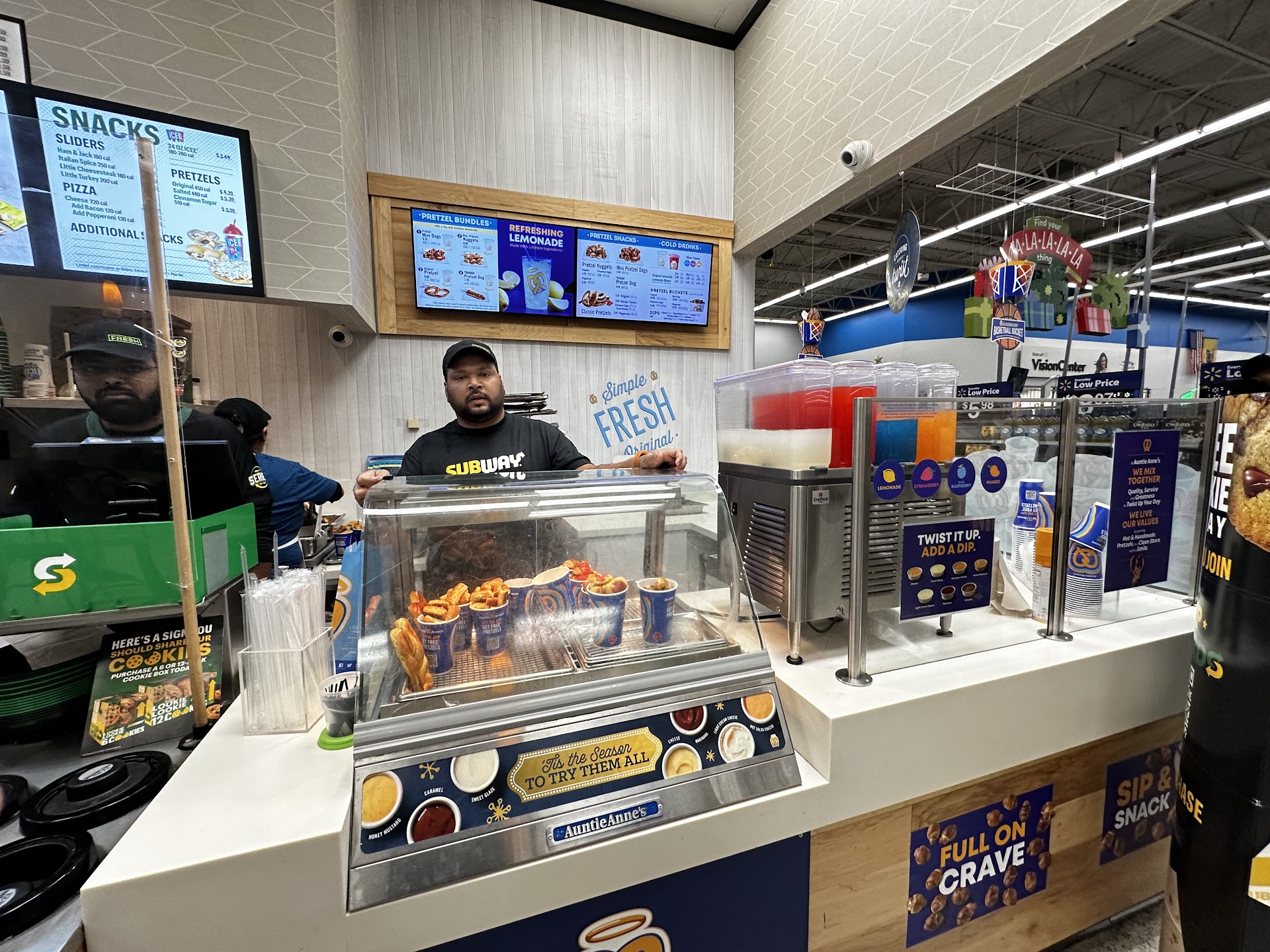 Global chain of counters dispensing sweet & savory soft pretzels with a variety of toppings & dips.