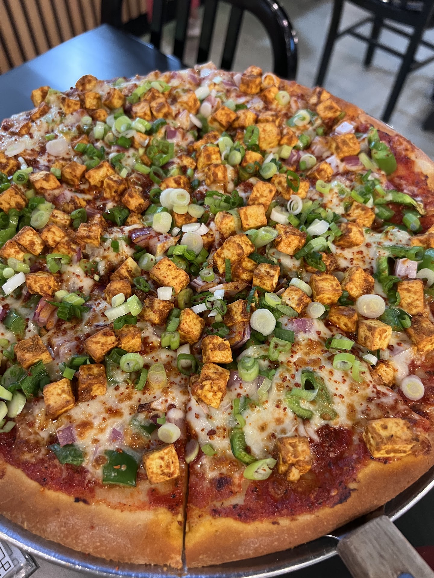 The Dhoom Tandoori pizza was my personal favorite. It was spicy and reasonably balanced spices, with just a bit of heat. And the toppings came together for a great flavor.