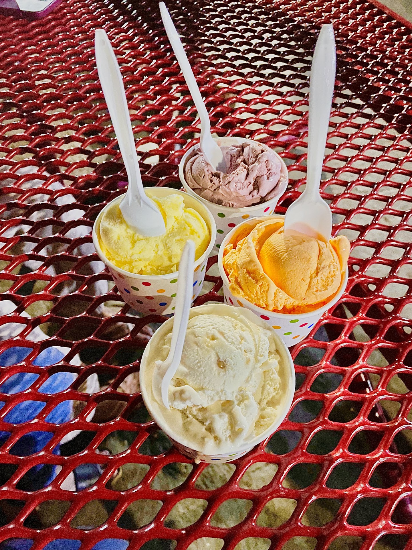 Read moreThis place looks old school, fun & nostalgic!! it brings with it lots of childhood memories, no matter where you are from , I guess we all grew up loving ice cream as children and I bet we all have at least one local street corner ice cream shop which we remember from our childhood days that makes us smile when we think of the uncomplicated beautiful times spent. Well Colonia Dairy Maid reminds me of just that, modest , pocket-friendly , huge in portion yet yum!! They serve very creamy ice creams in loaded varieties of flavors , from the popular ones to seasonal fruits, also quirky ones as pina- coladas. You get it in cups cones sundaes & floats!! This was my first time with my frds who are regulars, so they ordered their favorites, the orange pineapple was outa world, it was indeed refreshing, & pinacolada wasnt as great though as per my taste bud, the pineapple was very fruity & fresh, Black rasberry was loaded in flavor too. I ordered a butter crunch, it was buttery creamy & crunch from the caramel made it stand out even more, the sea-salty touch from the caramel perfectly balanced the sweetness of the butter..& omg their portion is HUGE, a small cup has four scoops & their smallest size is “Dixie” which is quite big I feel😂 But how much Ice cream is more ? Lol A great hangout spot & is opened till 10.30 pm on a summer night, people usually come for a night binge & this place could be very busy, but servers are quick & polite!! There are benches on the backside where you can hangout & enjoy your creamy scoops while chitchatting !! Overall an amazing place & I definitely recommend!! ALSO DO REMEMBER ITS A...