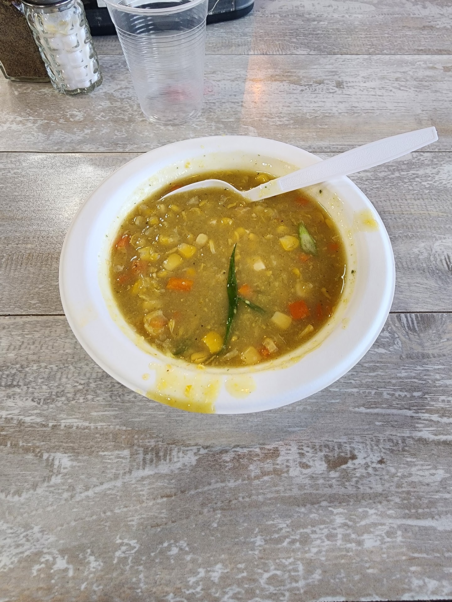 Sweet corn soup: 3/5 - Soup was not freshly made as the broth was very thick, spicy, and overfilled with sweet corn kernels. I have had this previously, and it made it differently and tasted fresh, which this version was not.