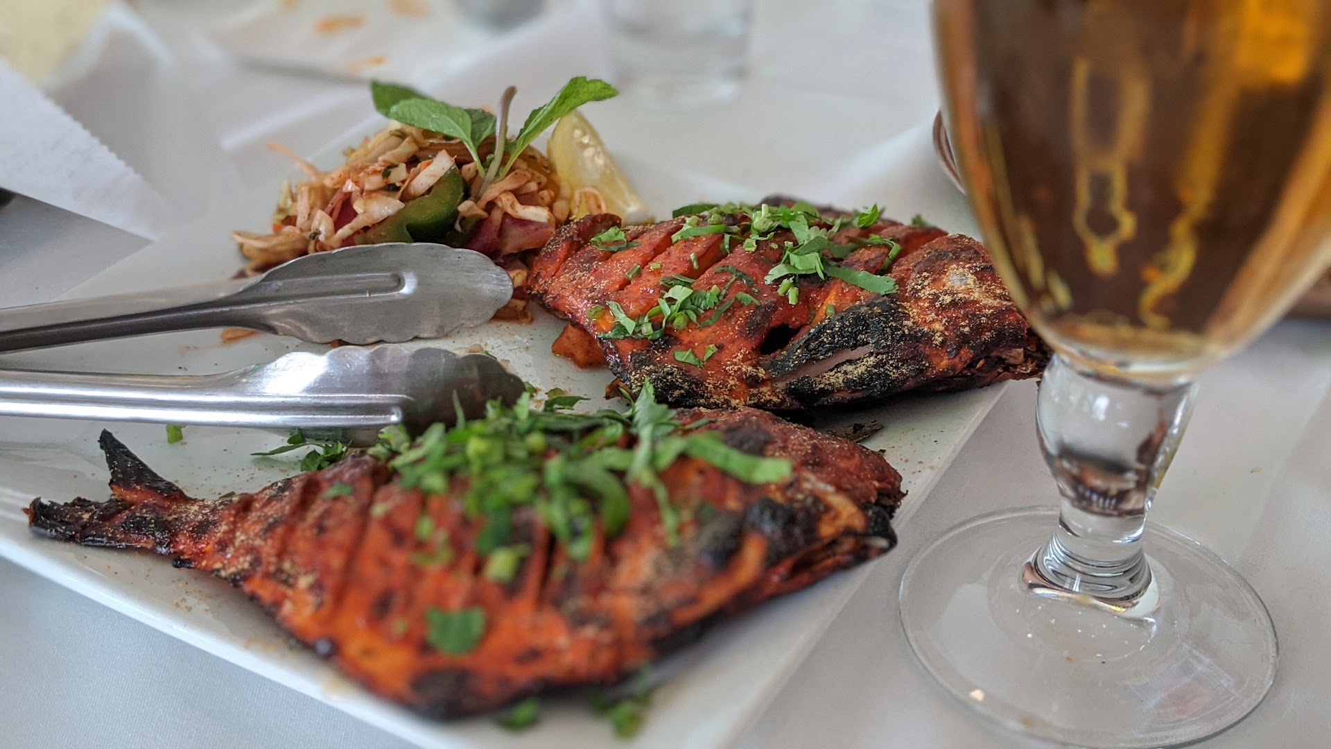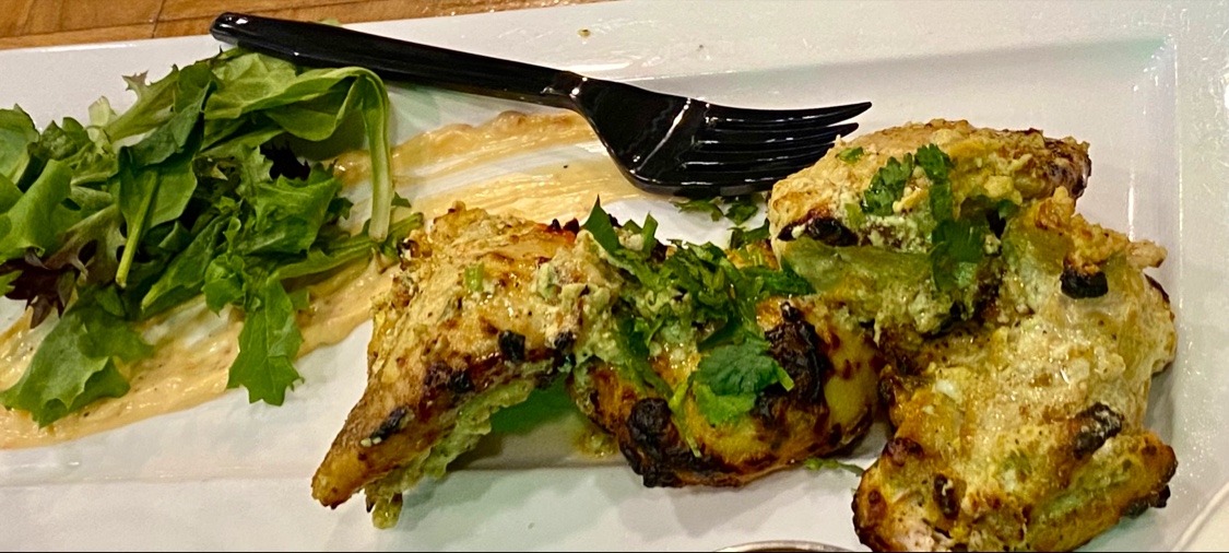 The place was mostly empty. The waiter advised us that not everything on the menu was available. He brought complimentary papadum and chutneys - on paper plates. Paper plates?! Had we stumbled into a too casual, low quality restaurant? The mango lassi came in a plastic cup and may have been pre-made. This set my expectations pretty low.
