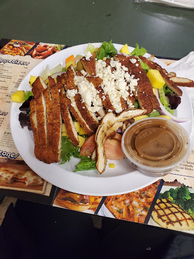 They have very delicious and fresh salads. The greens are never wilted and always have a pleasant fresh crunch. The bread is flaky and fluffy! Absolutely addictive. I havent tried the pizza yet, but I am recommending based off of the other platters (co-workers say pizza is great). They have a great variety of choices too! There's also parking on the side for about 7 cars. The staff is super friendly. They have take-out and dine-in available (they provide hand sanitizer). Check it out!