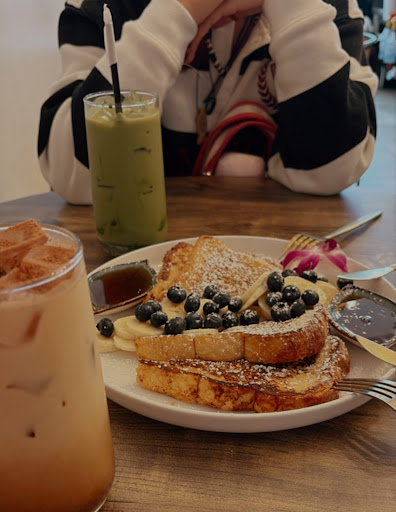 Food was delicious! Our French toast was perfection! It came with bananas and blueberries (which I will address in a bit). My daughter who is a matcha lover loved her drink and gave it 10/10. I ordered the tiramisu latte and it was amazing!