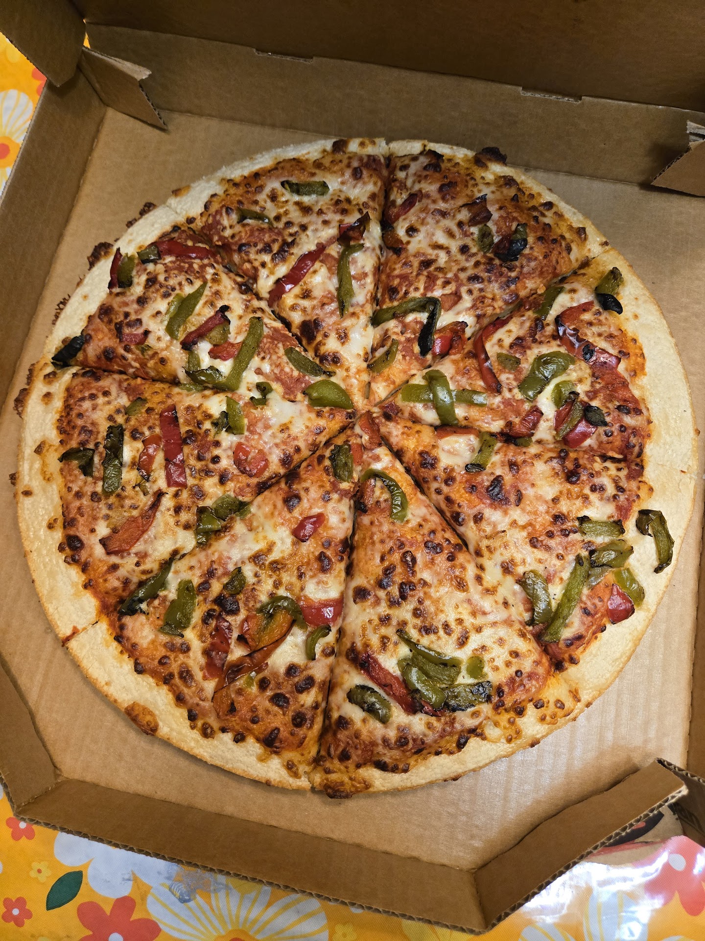 Read moreI absolutely love pizza hut it's always the crust for me! Before the other day it's literally been 7 years since I ate pizza hut. I love that they expanded their menu. The garlic parm wings were amazing so were the mild Buffalo. The cheese bread sticks were delicious. The cinibons. The mini apple pies omg! We loved them I wished I ordered more. I like my wings well done crispy because domino's gives u damn near raw wings I always have to put them in my air fryer for another 25 mins to cook them your chicken should not bite back lol. But I asked our cashier at pizza hut to make them extra crispy and they did not disappoint wings were perfectly cooked. Only thing I kind of didn't like was the sauce on the garlic parm wings they were good but I've had garlic parm wings a lot if places but it was always a rub sprinkled with parm cheese but never the less even though it was a different than what I was used to they were good. We got one pepperoni and cheese and one veggie with mushrooms onions olives banana peppers bell peppers and bacon it was one of the best veggie pizza I ever ate they get a 10/10 for me. I just wish they had more locations and I didn't have to drive 25...