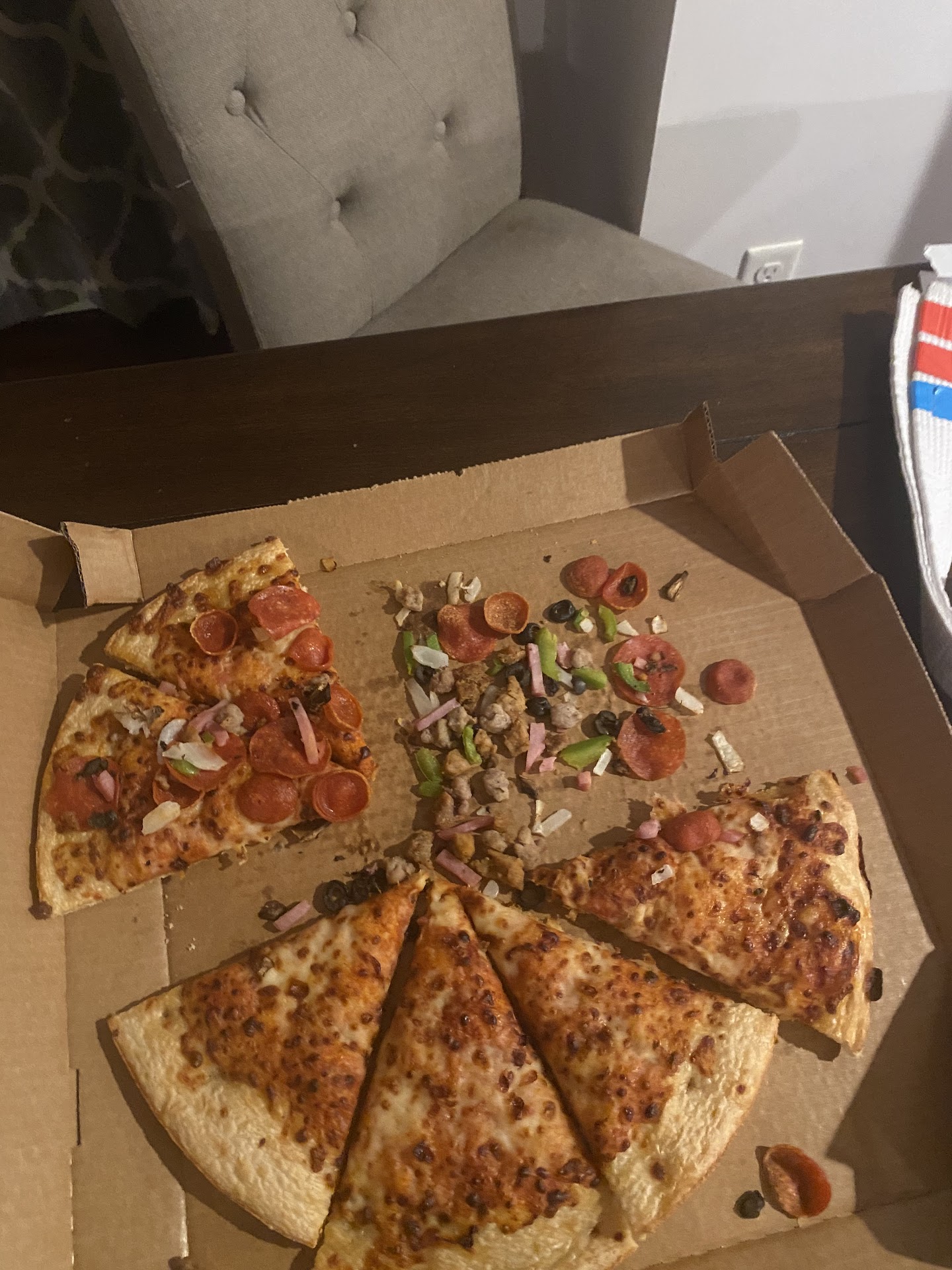 When I got home I opened my pizza and it was a joke. The topping all fell off the pizza by their shenanigans of trying to cover up their mistake. I complained to corporate about the service my daughter was given and about the pizza. But all they did was send me a generic email. It just seems like they allow this poor behavior in...