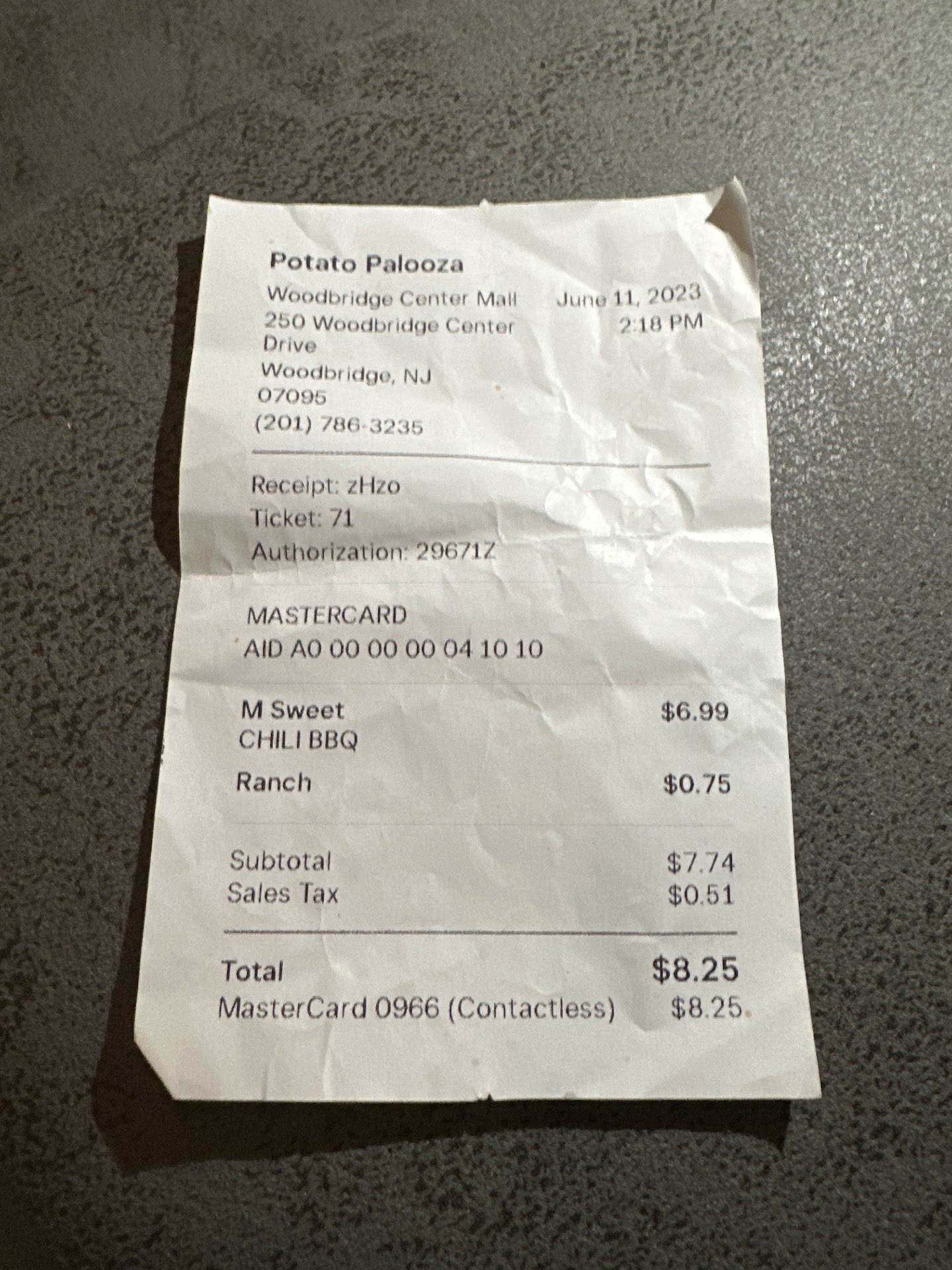 Read morePotato Palooza has the best chicken fingers and wings I have ever eaten in my life. It was so crispy and fresh. Every person around me was raving about how good the food was here in Woodbridge and the Mall workers said they all come every day. Max was absolutely great and so nice. His food is 10/10 and the service was amazing. This was the best food experience I have had...
