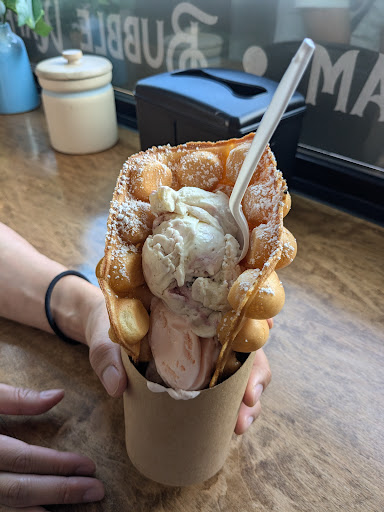 The bubble waffle was very meh, had a pancakes texture that wasn't quite right and many of the bubbles were hollow. The staff also struggled to make it and had to retry.