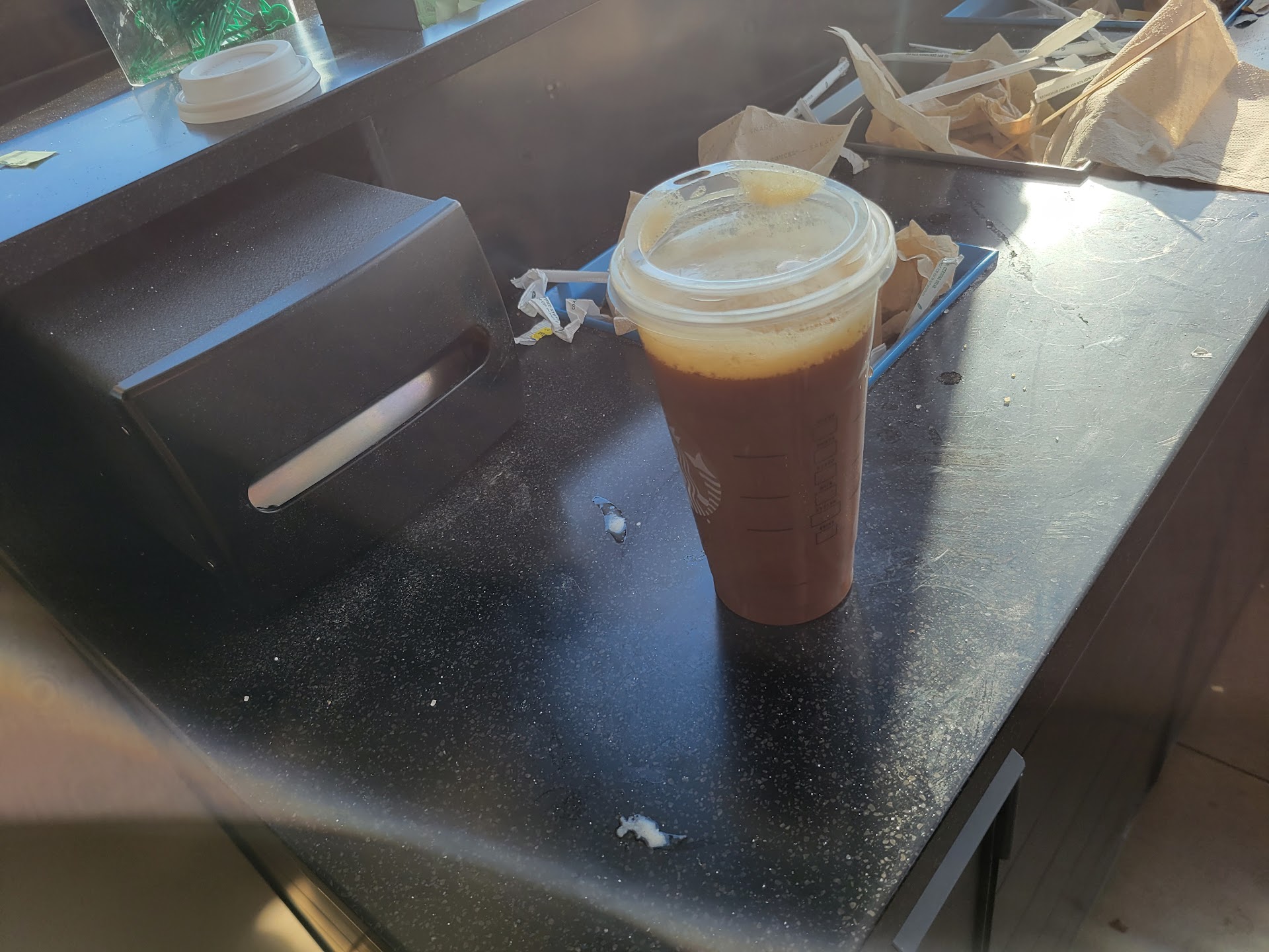 The coffee shop itself was filthy, the counters were covered in empty straw wrappers, spilled coffee, and dirty napkins. The floors were sticky everywhere, from the "order here" counter to the "pick up here" area, with displays spilled into the walkway and not a staff member caring. Overall, would...