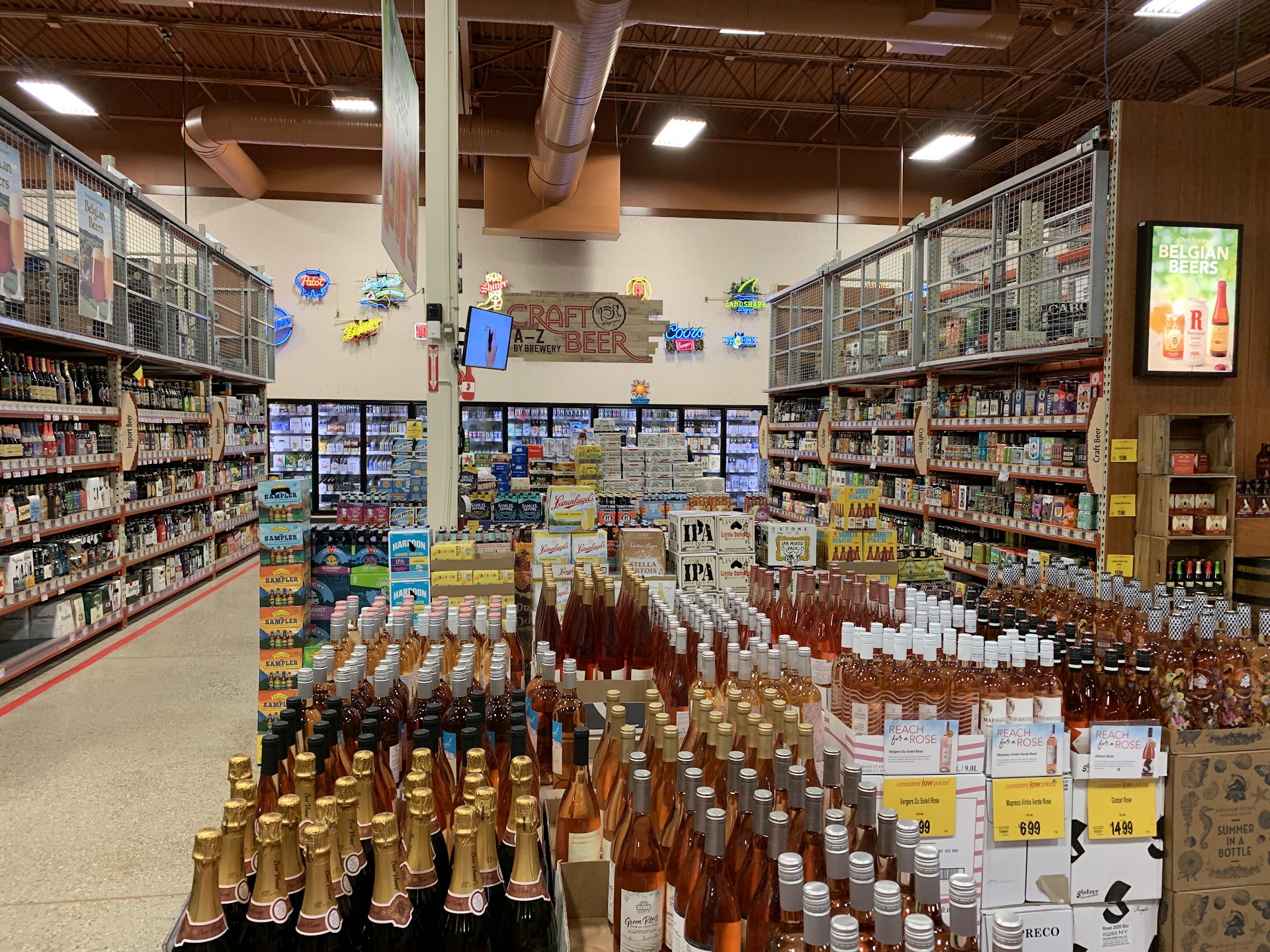 The store is cleverly designed with the wine section dominating the entrance and the mid section, with beers located centrally and all the way to the back in the cooler section and your whiskeys and rum towards the right.