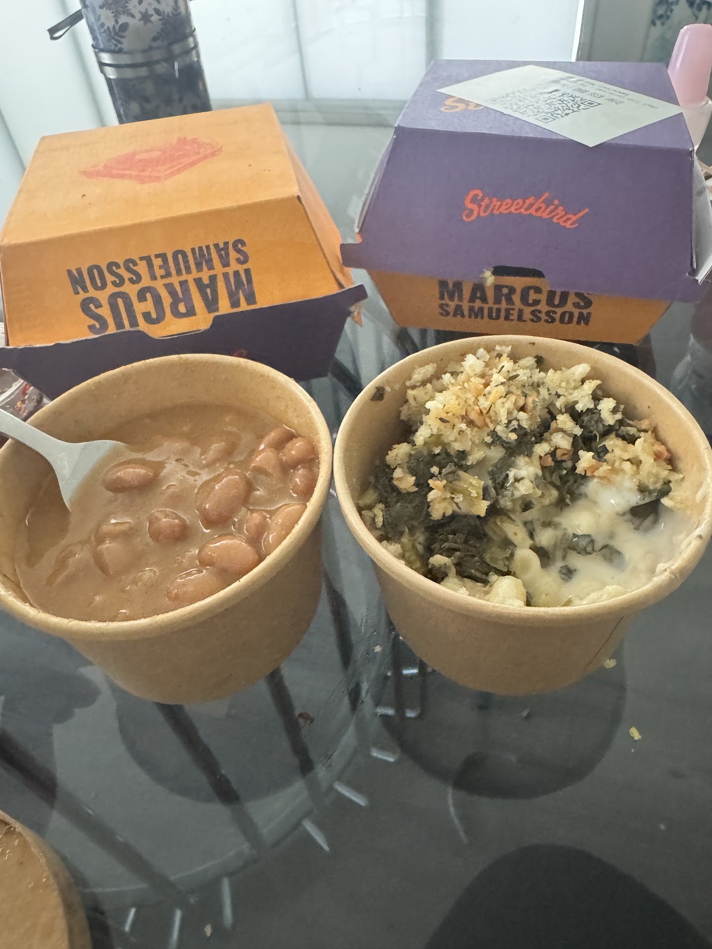That said, the food itself didnât really hit the mark. I tried the deluxe chicken sandwich and found it blandâthe chicken was tough and clearly reheated. The pinto beans from Tejas were cold and not enjoyable, and even the mac and greens, while better, still lacked flavor. Nothing really felt freshly made or prepared with care.