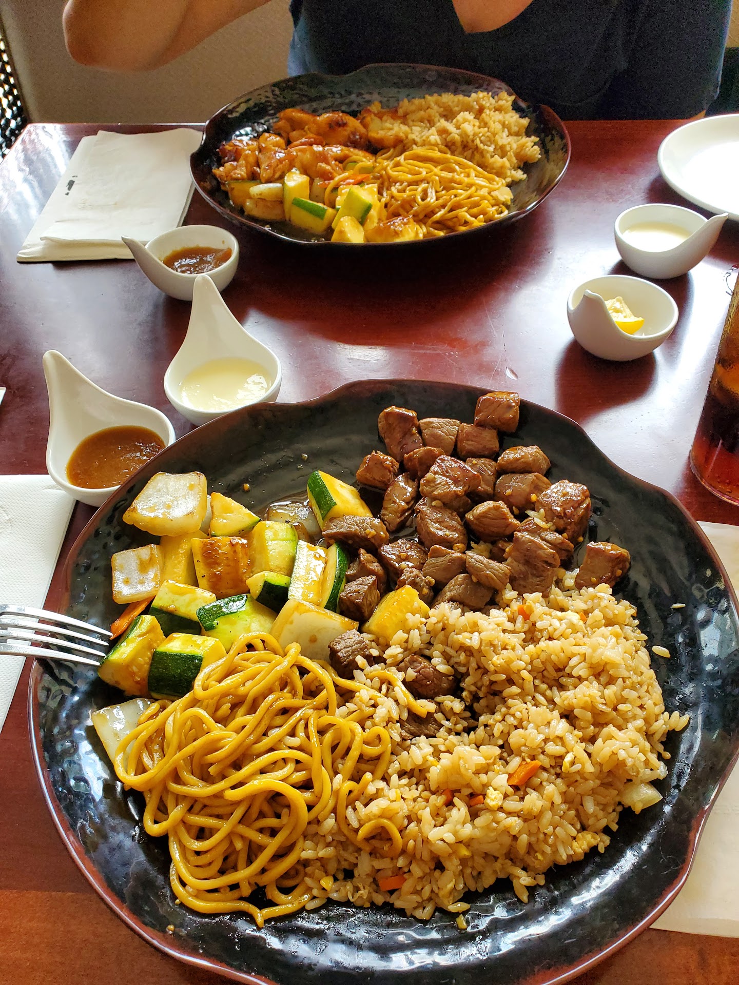 Read moreI arrived with my son and noticed the crew members were ready and eager to serve. However, the welcoming phase came slowly and we had to wait to be acknowledged. After receiving menus and exchanging pleasentries we had to wait again for our order to be taken. Yoshi Sushi and Teriyaki seems to be receiving plenty of take-out orders to keep the kitchen busy but at the time we arrived there were only 3 people seating at an indoor table with a baby. No more guests in the restaurant so the waiting time went unexplained to me. After ordering, we got a Homemade Lemonade and one glass of water. Why not bring two glasses of water, if we are two? Then, after a while, the food arrived. Food was hot and in decent presentation. However, the Shrimp Tempura with Veggies and Fish Tempura apettizers were too heavy on the breading/battering. It was very difficult to find the shrimps ( only two shrimps that look like artificial shrimps... and two veggie tempura) and the small white fish bites ( the fish had a good appeareance and texture but very tiny pieces...). The Fried Ice-Cream was just that. Nothing special worth mentioning. What I found odd was that not a single time our table was cleaned after eating two appetizers and a main dish plus the waiter asked me to keep my dirty utensils after retiring the dirty appetizer dishes. Why? After eating basically nothing from these two appetizers, I ordered a scallions beef wrapped dish that was a better choice and to be honest despitr having nothing exceptional to it, I felt like it was a good choice. The homemade lemonade looked good. I didn't taste it. I will say that perphasp is a good place to order from and make a quick stop for a quick bite. They don't sell alcohol but have a shelf for patron to leave their BYOB. The restaurant will benefit from an update to the decor and from a deep cleaning and/or shampooing their carpeted floors and/or rugs. They look dirty on some spots in contrast with less stepped-on areas. The bathroom was okay. Overall, my rating is a 3 star reviews. I could come back but it's not an impressive place to...