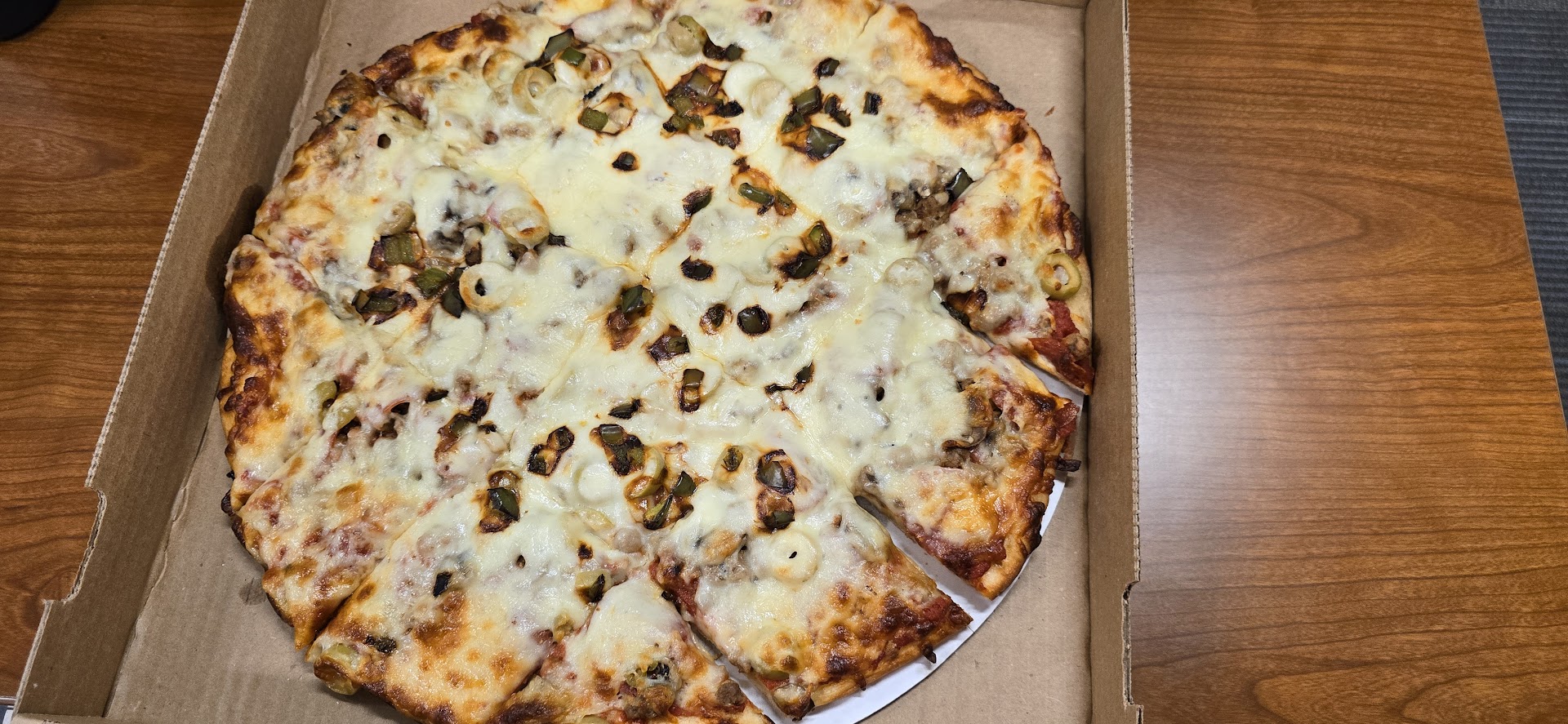 Holy wow is all I have to say. My husband ordered carryout tonight from there and it was amazing. We ordered a large pepperoni and mushroom thing crust. It was perfect. Sauce was best I've had on a pizza ever!! It was cooked perfectly. We also ordered a large Italian grinder and they added banana peppers for my side as well as Italian dressing. It was one of the best grinders I've had since Lexys. Hands down. Also had the Bosco sticks. Omg. The cheese sauce that comes with them is a delicious bonus. There are a few pizza joints closer to us, but none of them we have tried have the same quality or taste. Plus the prices are affordable and very reasonable. Will definitely be our first choice from now on. Keep doing the darn thing guys. Thank you for...