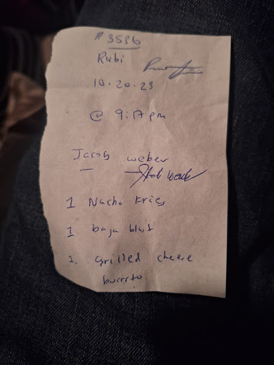 Upon discovering the mistake, I promptly contacted Taco Bell to voice my concern, and I was informed that I could come in to have the order replaced free of charge. After a week's delay, I returned to the Woodburn location at 8:15 PM on October 20, 2023, to collect the corrected order, along with additional items I ordered myself,such as a grilled stuffed burrito nacho fries, and a large Baja Blast drink. The only item intended to be provided free of charge was the Party Pack.