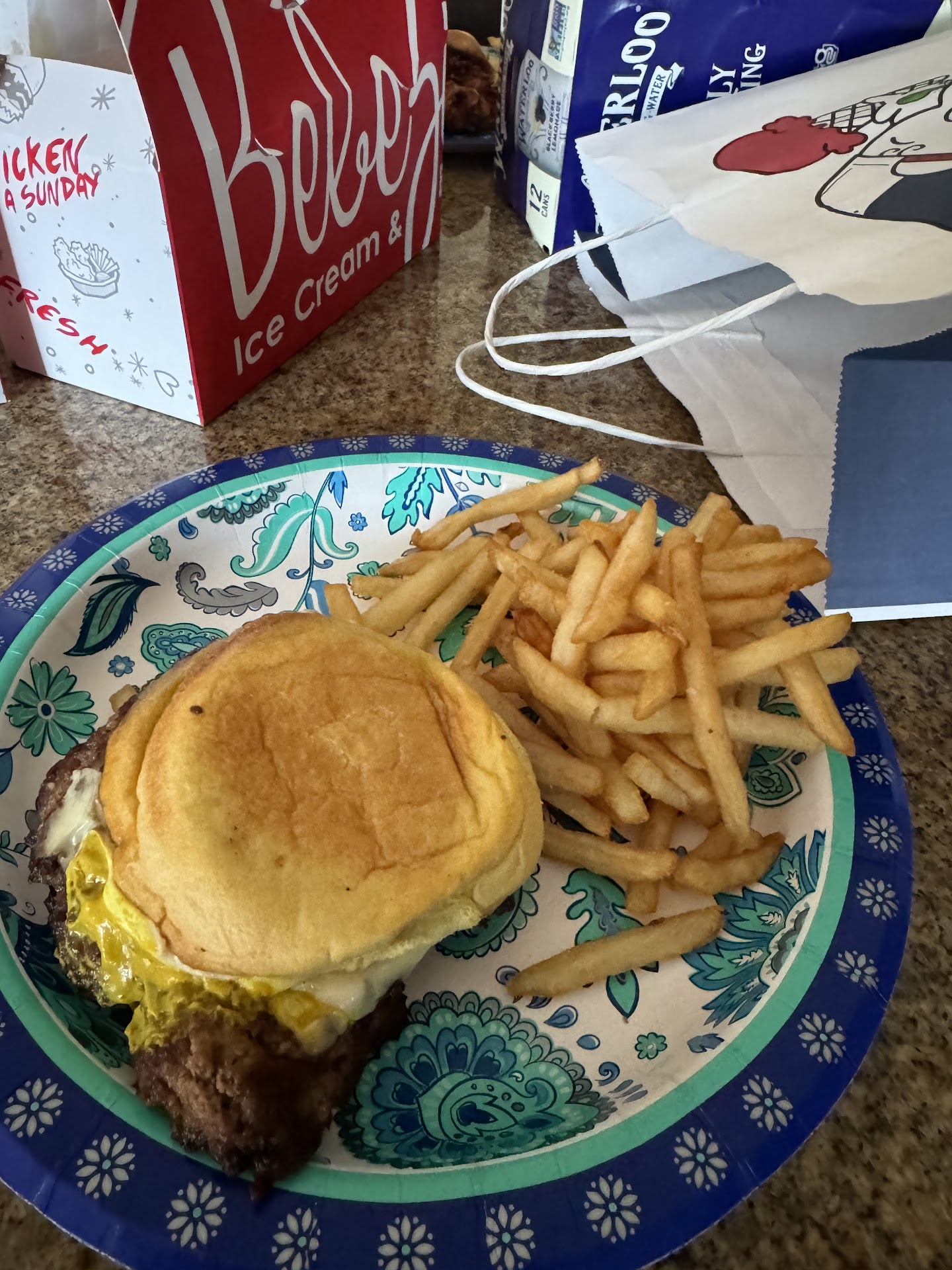 Read moreI have been really excited to try this place and all the reviews seem to be really good so I was a little baffled when we tried it tonight. I agree with other reviews that this place is understaffed. My main complaint is the whole place was very dirty. There was a lot of little things that added up to a poor experience. First, the kiosk didn't work with no note on it and by that time there was already 3 people that had walked straight to the counter. The person at the front was nice, but not very helpful. The bathrooms only had ice cold water and no soap which isn't the biggest deal, but on top of everything else was super annoying when you're trying to wash your kids hands too. The floors looked like they hadn't been mopped in 3 weeks and everything just felt kind of slimy. All that being said, the burger I had was actually really good and the cook was really nice, but basically nothing else about the experience was and for how much we spent we could have just gone to Hazelwood and probably even spent less for a better experience. If you're going here for just a burger/fries for take out it's fine, but I don't think I would come back and was really surprised by all the 5 star reviews. Maybe I hit a bad day but it really wasn't even busy when we went on a Friday, so...