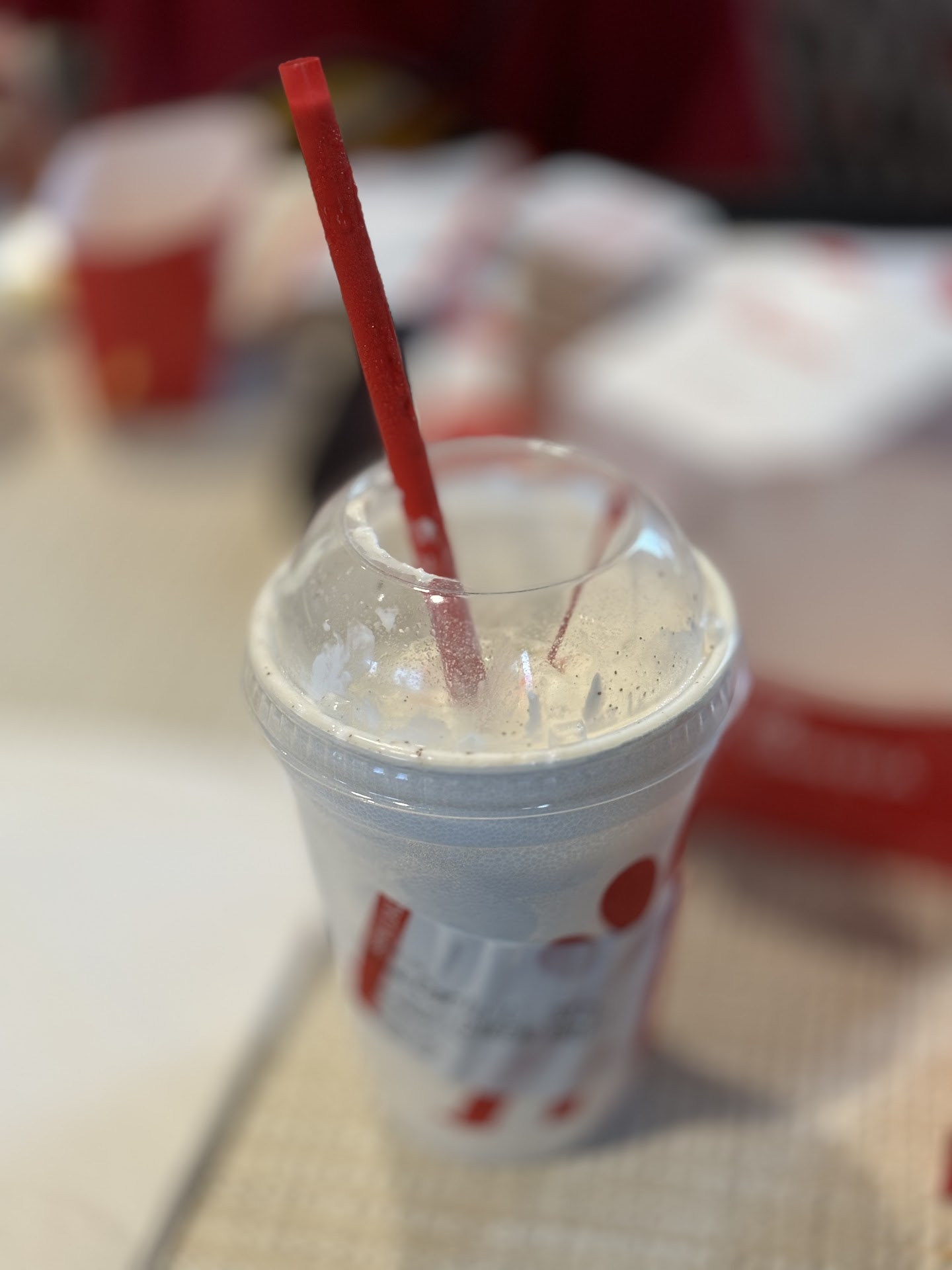 🥛 MILKSHAKES If you're not full yet or you need something to drink, get a milkshake. My personal favorite is the cookies and créme, but there are other flavors like vanilla, chocolate, strawberry, and during the winter season, a peppermint milkshake. It's chilled to perfection, and while it's not overly sweet, it has enough sugar to satisfy any sweet tooth.