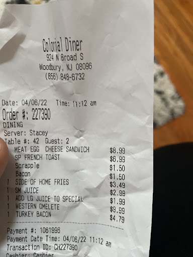 Read moreOur first and only visit was for dinner on 12/26. We had a new server and she was extremely pleasant. The food was also very good. I had ordered a French onion soup that never arrived, so I just asked for it to be removed from the check. Apparently, the hostess wasn't familiar with how to remove an item from a check, so it took a good 15-20 minutes for us to get the check. That's when the second problem started. One of the people in our party ordered the eggplant parm entree, which he received and enjoyed. The check showed eggplant parm with shrimp. It wasn't what he ordered, nor what he received...so we asked to have the check corrected. After another 15 minutes, the hostess came over to ask about the situation, stating very loudly that our server told her that we ordered the eggplant parm and shrimp. We assured her we not only didn't order the shrimp version, but we didn't receive the shrimp version either. The hostess then said, "We'll have to check the video cameras to see what you actually received. We've had some shysters in here." A number of other patrons turned around at this point to see what was going on. When we explained to her that we definitley did not order nor receive the shrimp version of the entree, and that loudly suggesting that they would have to check camera footage in case we are "shysters" probably wasn't a great business practice, she then told us that she usually doesn't work there...she was just covering for someone. Then she said she would adjust the check accordingly and she apologized. After another 10 minutes, we asked the status of the check and she said the server was supposed to bring it back to us. The server then brought it back and the adjustment was not made. At that point, we just wanted to get out of there, so we paid the check and left extremely upset. Before we left the table, the woman at the table behind us apologized to us because she was a longtime customer and couldn't believe what she just heard. Needless to say, we will NEVER go back to the Colonial Diner. If the owner or manager would like more info, please DM me on Facebook (I left the same review on your Facebook page) and I'll supply my cell number. With all the positive reviews and personal referral we received to try this place out, I can't imagine that you want your establishment...