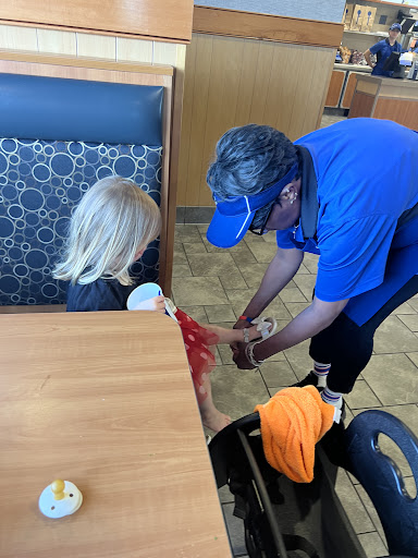 As others have stated on here, the food was delicious and came out super quickly. But the thing that really blew me away, was the staff. The gentleman who checked me out, was super kind, patient, and inviting. Once we sat down, there was an absolute angel, helps me throughout the entire meal! She brought over napkins, she grabbed high chairs, she helped a toddler get a new spoon… She even noticed that my toddler shoes were on the wrong feet, and helped switch them around, I’ve never seen anything like it! The kindness, and consideration is something you never see in this world. Pay it...
