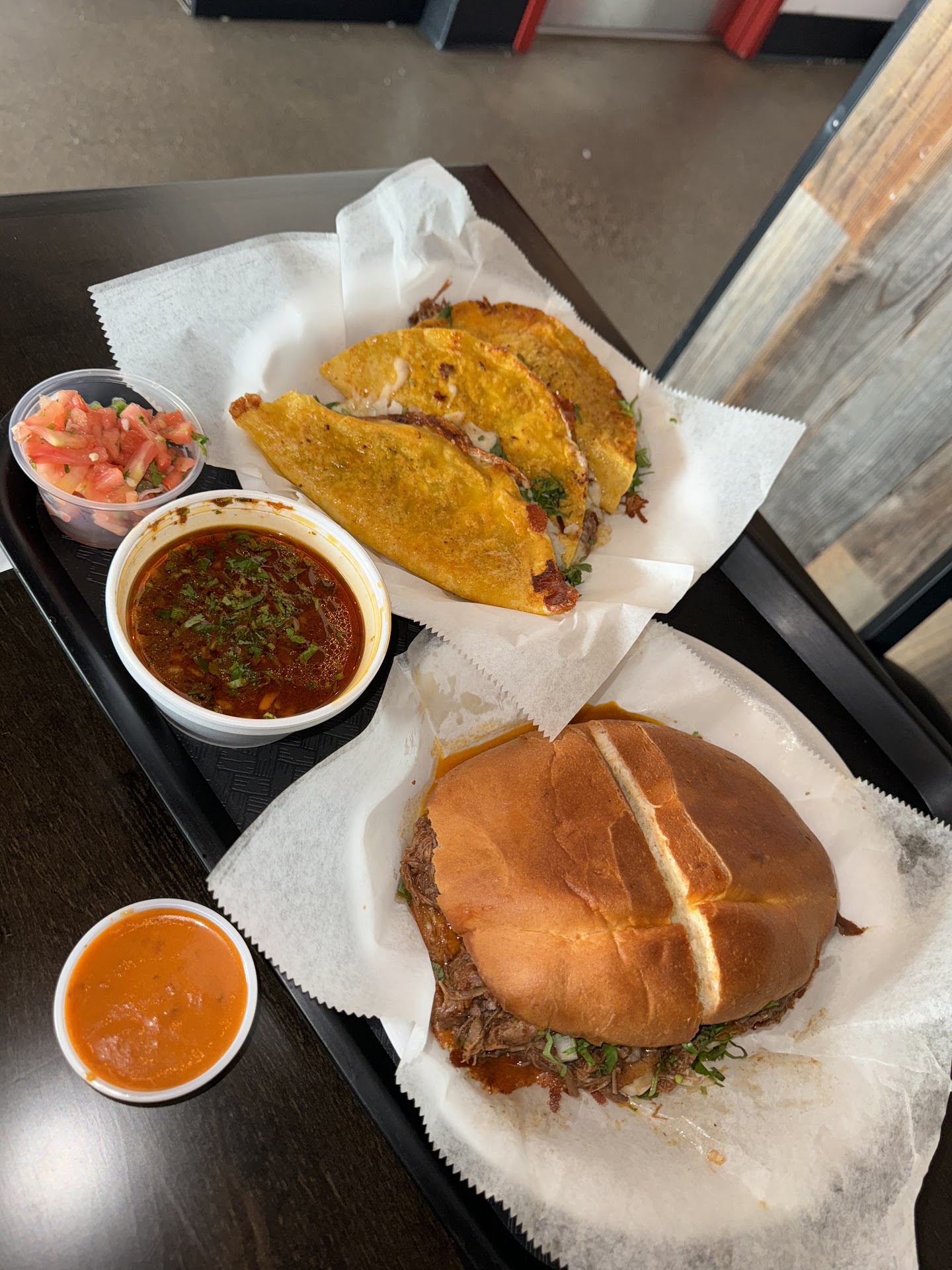 Read moreStopped by for dinner. There weren't that many people inside but don't let that dissuade you from trying it out. It's fairly new to the area and maybe doesn't have the hype that other places do, but boy were we pleasantly surprised! My husband and I ordered the quesabirria tacos and torta cubano. We both really enjoyed our dishes. My quesabirria tacos were huge and loaded with meat. It also came with a big bowl of consume for dipping. We were both stuffed when we left and for the price? Even better! We will definitely be back to try out their other dishes. I saw they have $2 taco Tuesday and $7.99 burrito bowls on Wednesday (I think that's what I remember). Anyways, give them a try. You won't be...