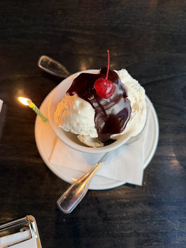 But the real star of the night was the shrimp and scallop scampi I had for my main course. Holy cow, when I say this dish was uninspired I do so only because I don’t have a thesaurus with me to find a better word to describe this absolute trash pile of a dish. Huge pieces of frozen, reheated broccoli mixed with tiny, nearly undercooked spiral cut shrimp and scallops the size of a quarter cut about 1/8th of an inch thick all in a bed of bland and not quite cooked noodles with a scampi sauce that was somehow brown in the bottom of the bowl. How scampi sauce comes out brown is beyond me, scampi is SO SIMPLE, how do you mess it up? Topping it off, the bowl it was served in had splatter all around the rim and a big smear where someone had either done the laziest attempt at wiping the bowl or their thumb had rubbed across the inside of my dish. It was honestly the worst dish I have ever been offered at a restaurant.