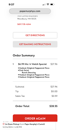 Read moreI love papa Murphy’s. The crust is amazing, they use the best ratio of cheese to sauce, and the ingredients are always fresh. HOWEVER this is by far the worst location I’ve ever been to!! When I place online orders half the time they are not ready at the designated time, then when they have to make it the staff is incredibly rude. I was about to ask for the manager, but the man that was being the most rude had a name tag that said “shift manager”. Another time when I placed an order by phone I went to pick it up and they claimed they never got the order and accused me of calling the wrong store. But I confirmed the number and what do you know, I did call the right store. So then I had to wait for them to make it. What is the point of ordering online or calling ahead if it’s not ready when you get there (especially when you call 4 hours in advance). The only reason I go back is because I like the pizza and it’s the closest location to me, but they are rude and...