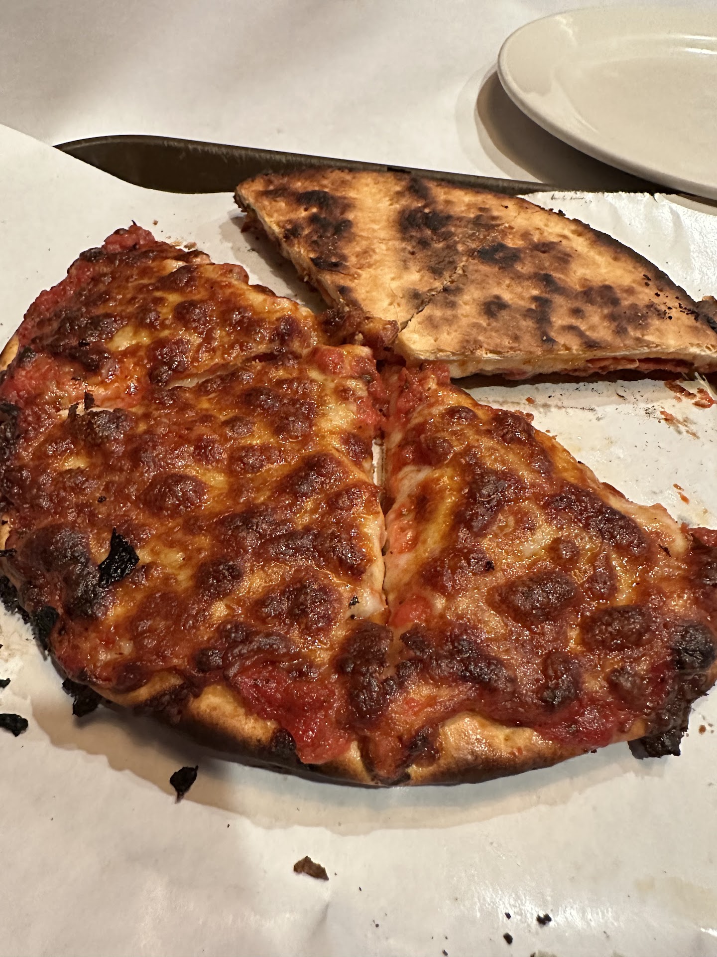 As I stated, in the first review, I always give restaurants a second chance. I returned on Sept 30, 2023. Restaurant was again empty, this server also was very nice. I waited for over 17 minutes. Pizza arrived, and it was very burnt & in my opinion not edible. Pictures attached.