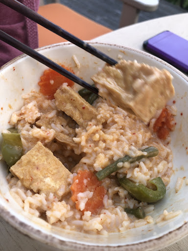 So we're watching this, I'm getting hangrier (angry+hungry) and then the wife catches the eye of the server, waves her over and says, "I can't eat this, it was suppose to be vegetables with coconut milk."