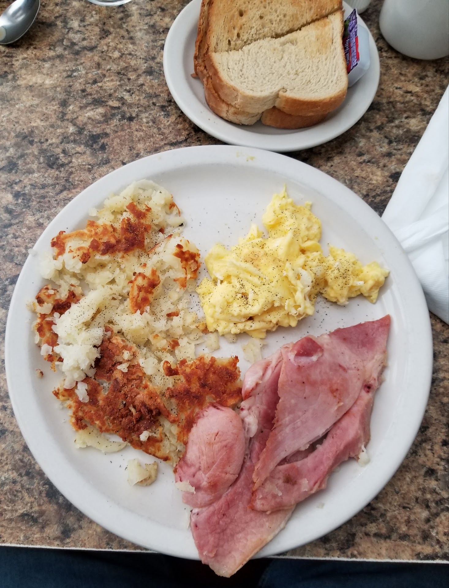 Read moreOur wait was approximately 20 minutes mid day on a Sunday, so it's not too bad for the start. We had an older lady as our waitress. She was very kind to us and knew how to upsell products, but that was a good thing. I had the scrambler and upgraded to the delicious banana nut pancakes! Loved them. Didn't even need syrup on them. It was like eating banana bread straight from the oven. The scrambler did come on a plate and was not as big as other similar restaurant(s) give you but was filling enough. Gravy on it was pretty good. Not canned like some places use. The butter was even good, but I need two next time. One had the yummy berry French toast. She loved them. So good. Other had an omelet with a biscuit. You have a choice with some dishes if you want toast, biscuit or pancakes. Will definitely be back. The only reason I gave a four star instead of a five was because as other visits, it was cold in there like the air was on. Felt good when it finally went off during our visit. Otherwise, it was a great visit with polite employees and...