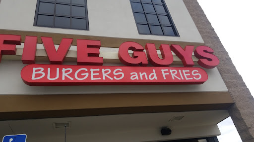 This was our first time there and I wasnt in the greatest mood cuz we had been out all day but when I walked in, Jacob immediately greeted me with a big smile! The two guys cooking (Jacob & Bobby) were smiling and dancing to the music as they made the burgers and thats what got me smiling too! I've never seen people so cheerful making burgers--they were just soooo cute! Then Lisa who was our cashier made us feel like a million bucks! Lisa was very patient to answer all our questions plus she was knowledgeable but she really went the extra mile when I told her I like onions but I dont eat onions that have already been cut, I only eat fresh cut onions and that's when she told me she would cut me a fresh onion! I about fainted! I mean you sure dont get that kind of service at McDonalds! We ordered the small burgers but they were way bigger in and of themselves than most burgers out there! We could barely fit them in our mouth! And thats there "SMALL" burger! Its really cool that you can have anything on your burger for no extra price! So we got the works: bacon, onion, mushrooms, tomatoes, pickles, ketchup, lettuce etc. Another cool thing was the peanuts they give you free to eat while waiting for your burger! The french fries remind me of the kind you get in California at In & Out Burger that have the skins on them, they are delicious and they dont cook them in lard like most places but they cook them in peanut oil which is better for ya! I had to sit down and write this review bc Lisa, Jacob and Bobby all deserve a raise or a promotion or BOTH! They were outstanding and a very good reflection of the restaurant and excellent customer service! Lisa even came by the table to ask if there was anything else she could get for us, so we were happy campers and put $ in the tip jar by the register. The place was clean and the food was amazing! If you want a good burger done the way YOU want it done, then this is the place to go, they aim to please! Thank you 5 guys....Keep up...