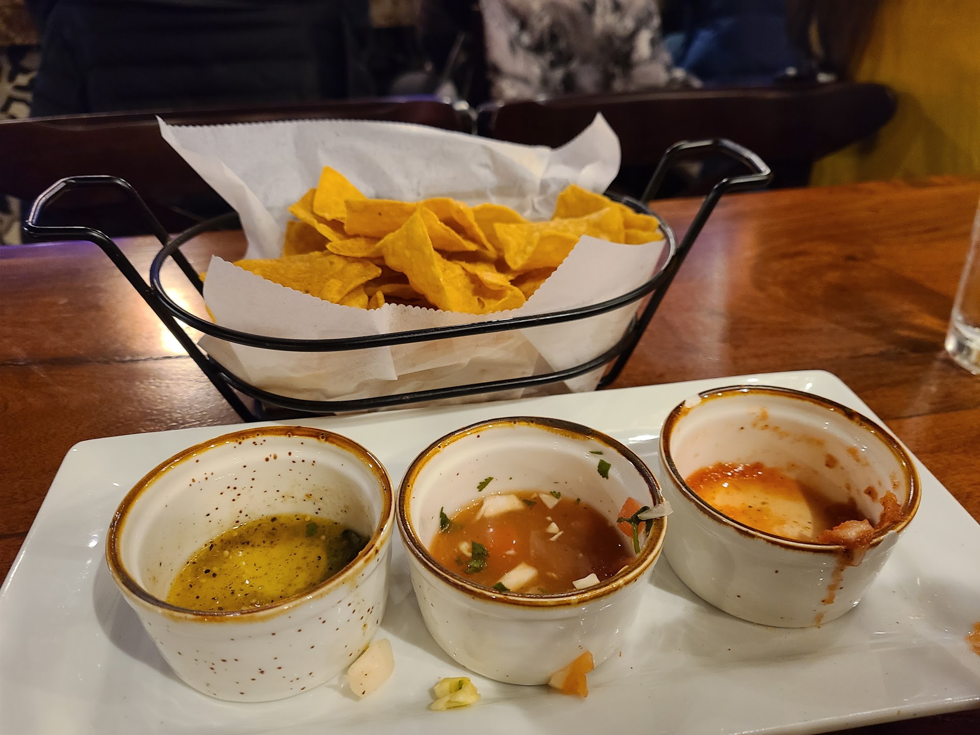 Add to this the homemade chips and salsa (particularly the spicy salsa) and the guac, and it's a match made in Heaven! I typically am put off by mid- to high-end restaurants that make you pay for chips and salsa, but I understand about costs. At $3.50, it was worth it. Just please, next time, don't give us the small, crushed chips!