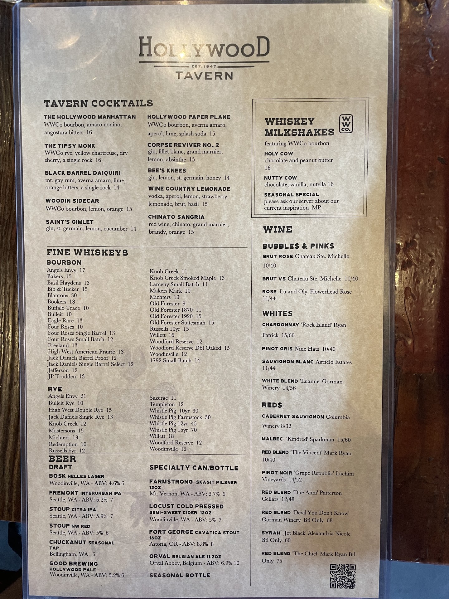 The Hollywood Tavern is not your ordinary tavern—it’s a Woodinville treasure. Nestled in the heart of wine country, steps away from Woodinville Whiskey Co., world-class wine tasting rooms, and charming local shops, this tavern is the place to pause, refresh, and truly savor the moment.