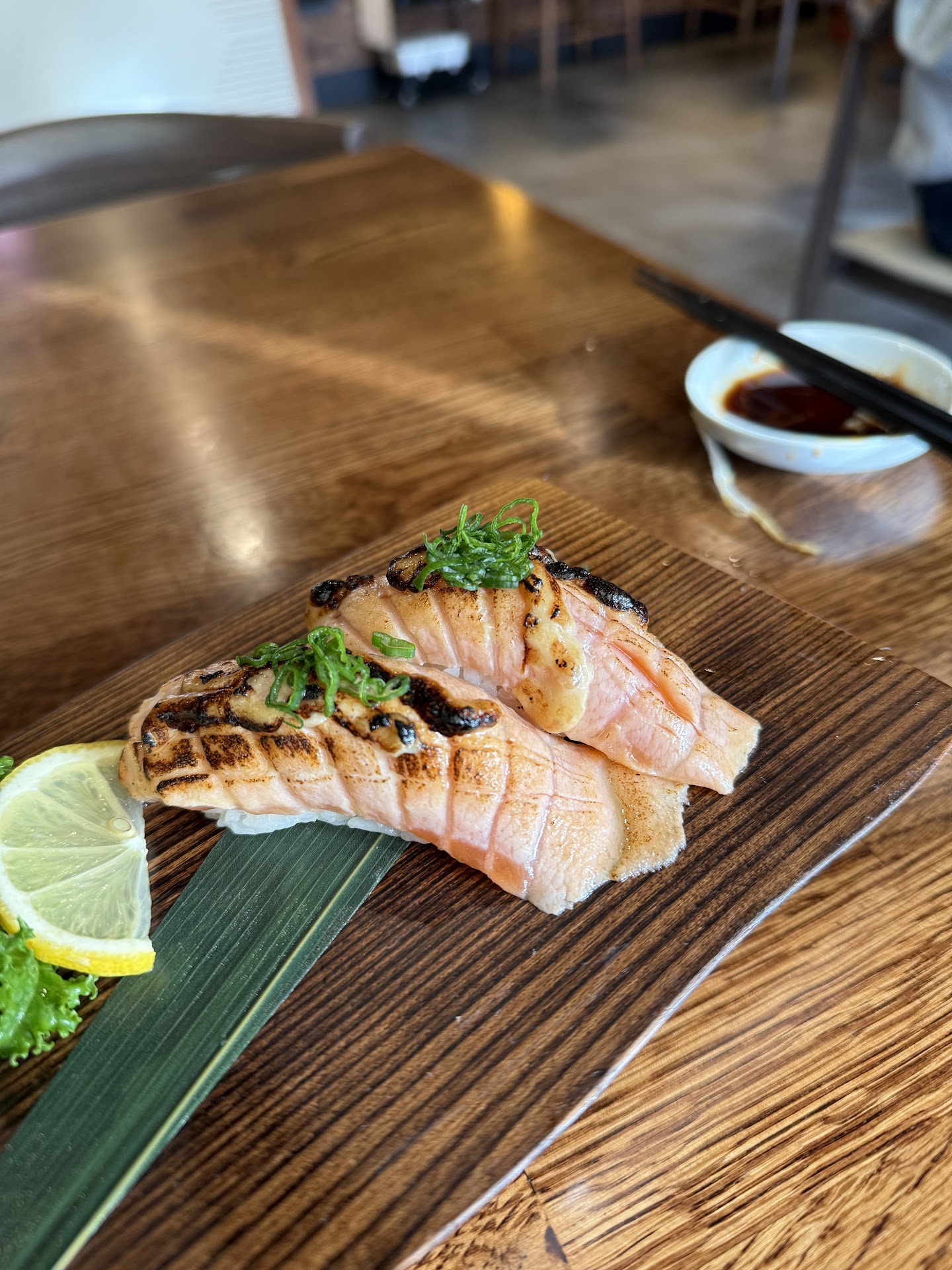 The caterpillar roll was packed with big pieces of eel and creamy avocado! Ooo you also have to try the garlic salmon - the fish melts in your mouth and is topped with a savory garlic aioli. Absolute perfection. The mackerel sashimi had huge portions and was perfectly umami. Lastly, the takoyaki was fluffy, savory, and had big chunks of octopus in them—so satisfying!