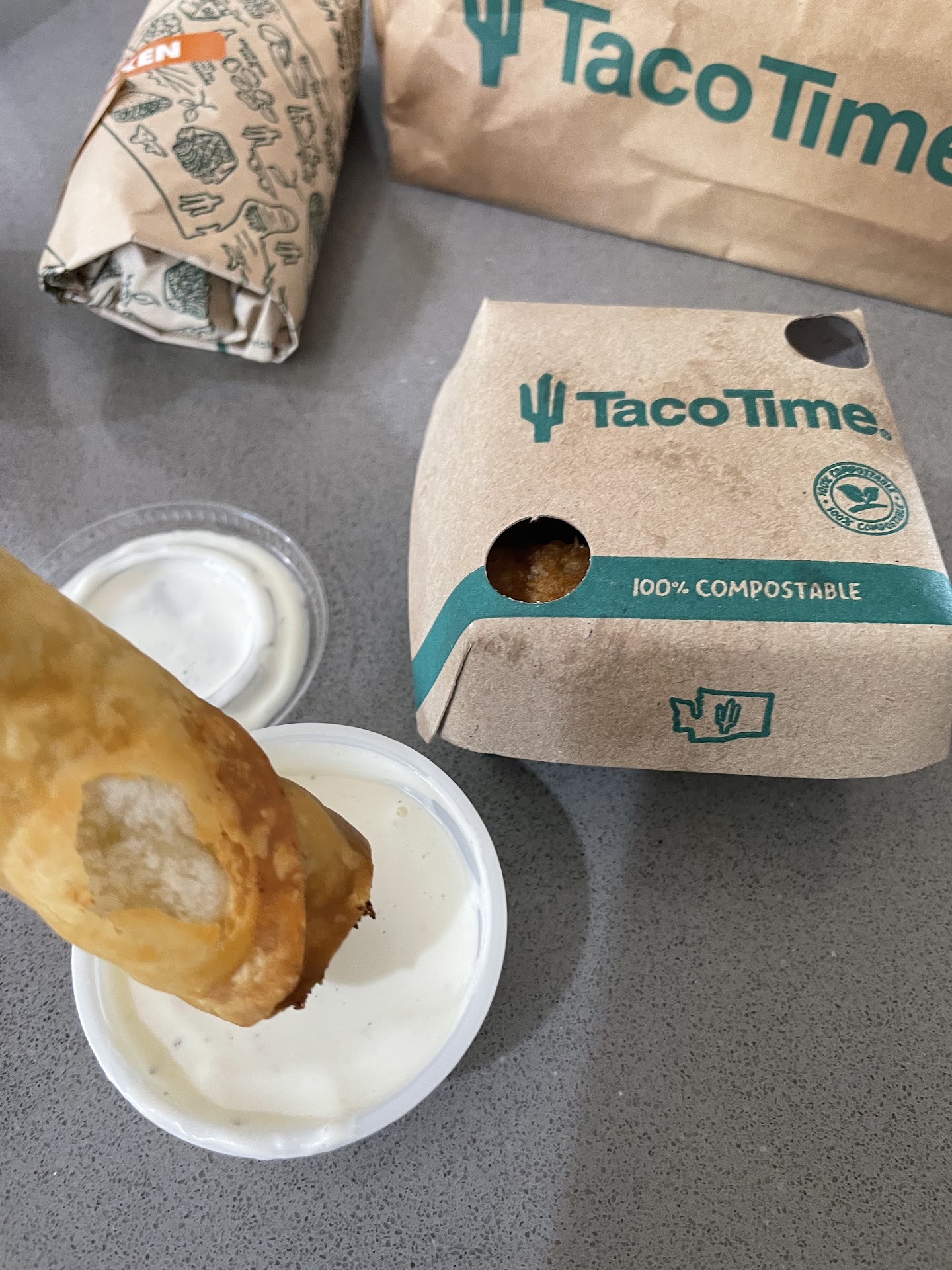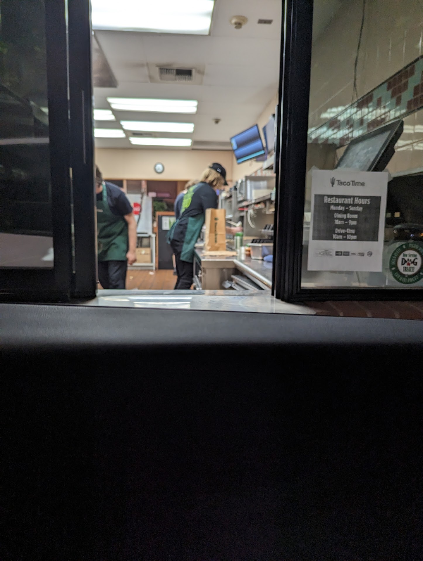 Read moreThis location of a NW favorite has lost it's edge on the competition. The staff, of which there were many, couldn't handle the small amount of patrons, 2 inside with an average flow of drive ups after the lunch rush. They actually ran out of taco meat during service! Chef Ramsey would have a lot of fun with this crew. Communication was poor regarding this issue as was the long wait while watching team members take breaks on the dining floor during it! There was a general feeling of "no rush" during this with staff standing around. I feel for management trying to hire competent motive staff in the current environment. Bad look for...