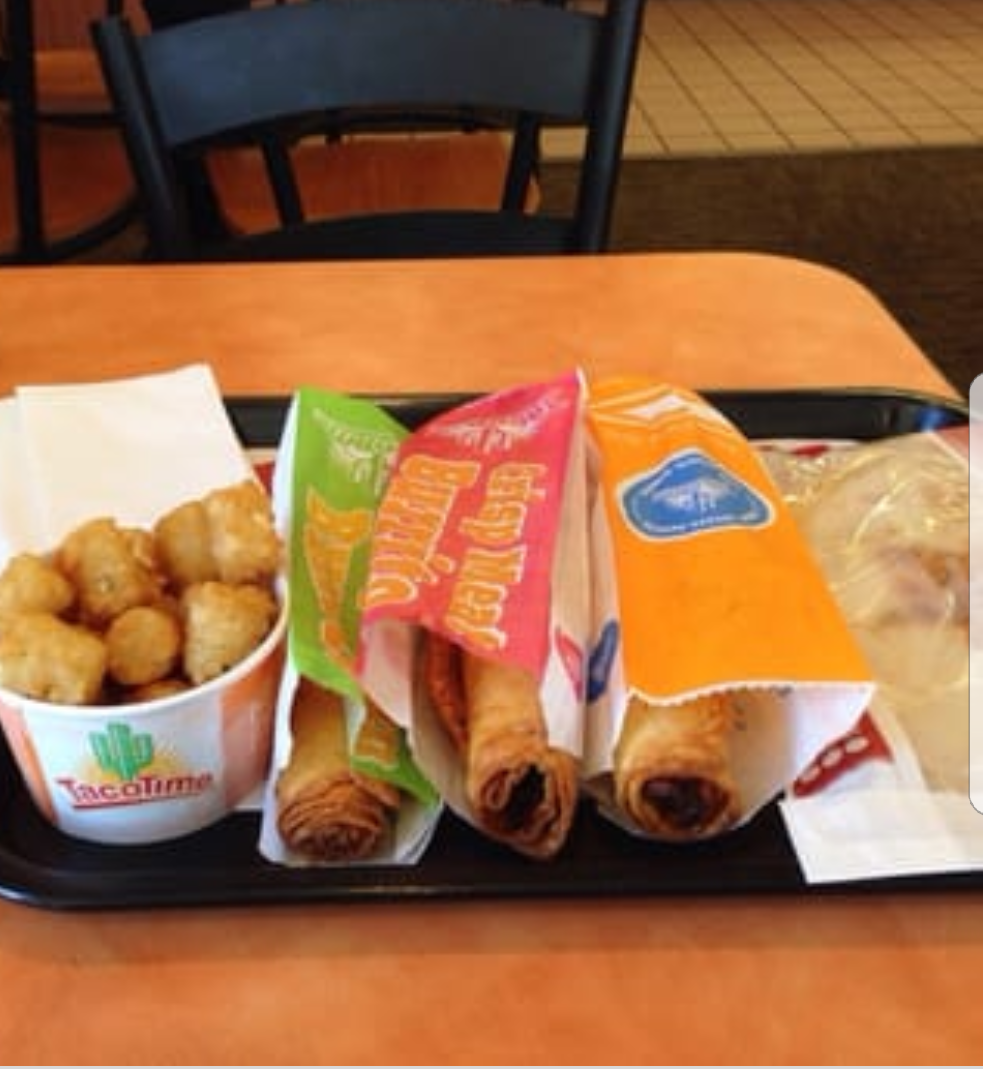 10 a.m. on a Saturday morning, on the return leg of a very early morning travel with only a double shot machiato down the hatch since last night's dinner. Shwarma place closed until 11. Drove 5 miles... fish n' chips place closed until 11. Did not want to end up at the Mc D... was just going to wait until getting home but happily discovered Taco Time Woodinville open. Decided to "dine in' rather than do drive through and pleased we did. "Facilities" were impressively clean and well stocked, the ordering counter and restaurant area impeccably clean and pleasant. Employees very friendly, cheerful and helpful. Tried a fish taco meal instead of my usual drive through fare and it was pretty good! I am impressed that they are environmentally conscious, even the cup lids and salsa containers are compostable. The tots were crisp and hot and pico de gallo fresh. Health rating sign of "Excellent" No surprise! No complaints here!! I would definitely dine...