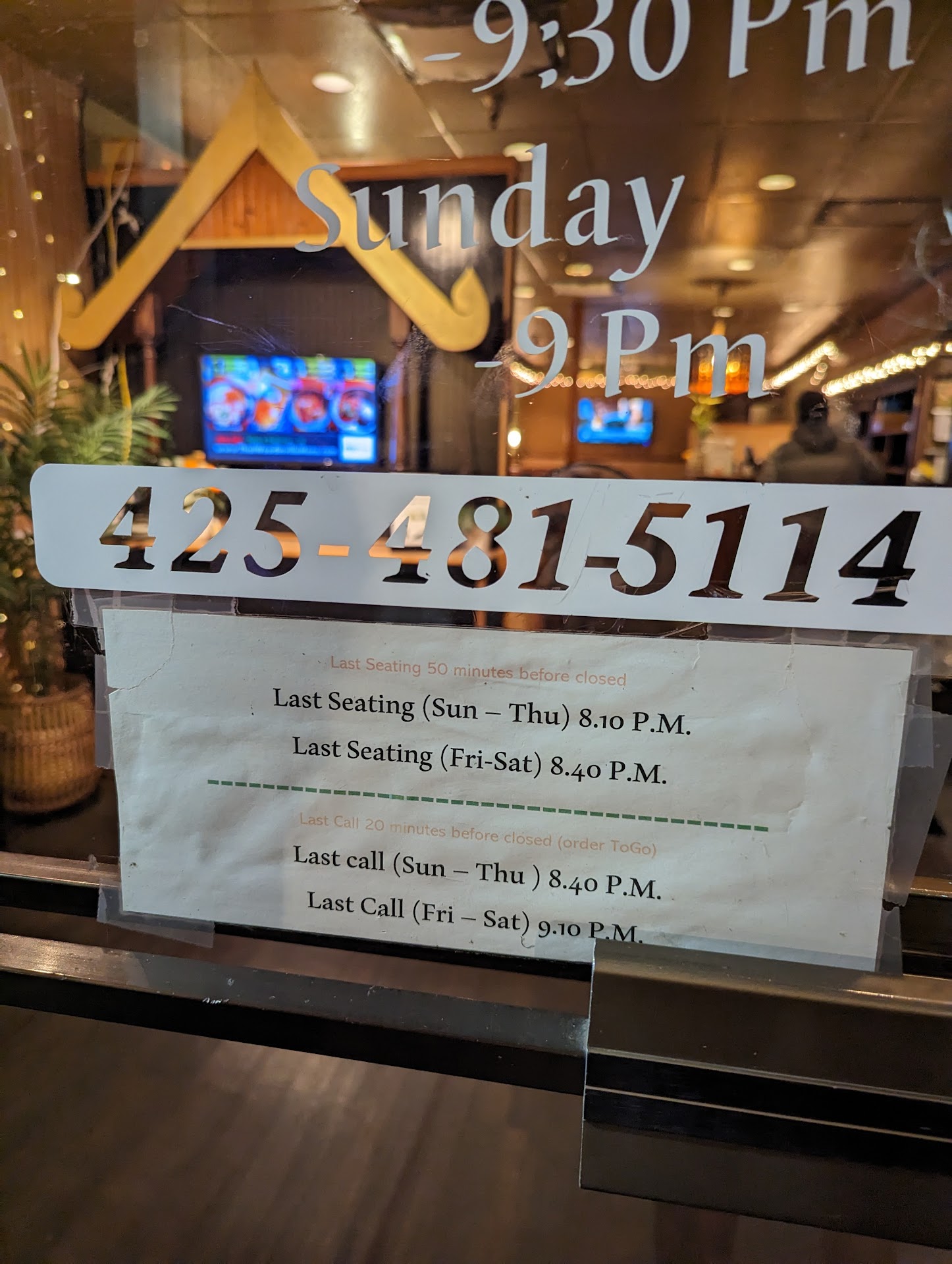 Review Main Course: I'd like to give the management zero stars. Our waiter was polite while seating us, but was literally sent away after taking our order to go drive a delivery order, and nobody came to say they were covering for him. We were forgotten about and didn't get our drinks. Eventually, our food came out of the kitchen and someone remembered that there was a table with people, and a kid in plain clothes (another delivery driver, but not waiter?) started delivering food, and had to be told about our drinks. Once we got our food, we were forgotten about again. All this time, the lobby was full of delivery drivers and customers waiting for to-go orders... there were so many to-go orders that the manager was running around constantly apologizing for every order. This is simply poor control of online/phone ordering. Many restaurants simply feel it's fine to just take an unlimited number of online orders and don't throttle them to the point of being overwhelmed, and this is completely what we got to witness while dining in. On top of all this, we got to listen to the manager and the kid argue from behind the kitchen partition while swearing. It looks like a wood-covered wall, but is REALLY thin. So yeah, we heard eeeeverything you said.