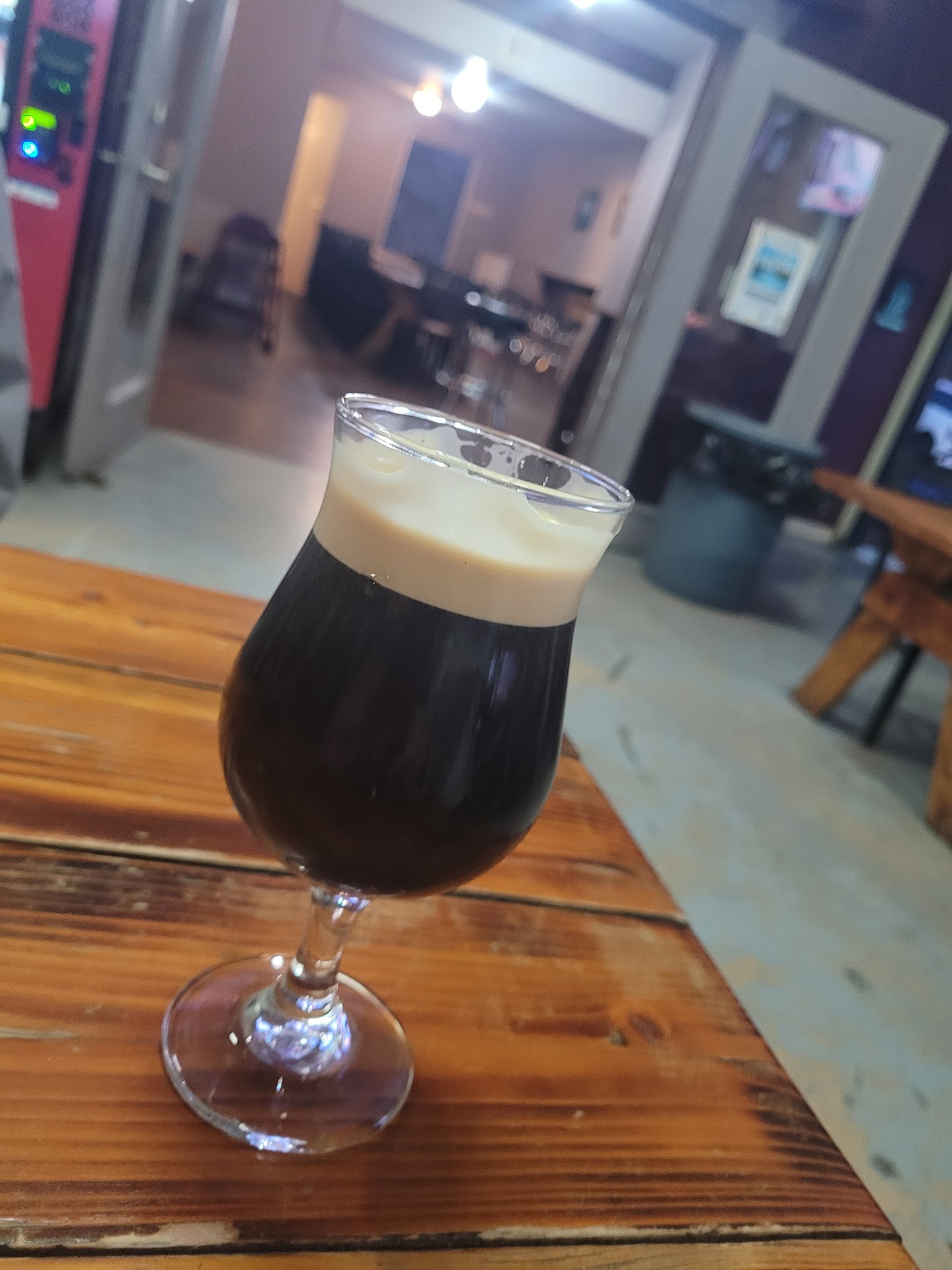 The place itself is pretty neat: located in an industrial park (you have to watch for the signs!) you'll find a small tasting room with bartop, then picnic tables arranged in the brewery warehouse and outdoor picnic tables in the summer. Uniquely, you can bring your own food and your kids and your dog/s... kinda neat to be able to hang with folks, thier kids and dogs in a beer garden!