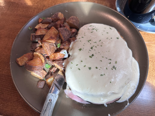 Croque Madame (Gilled artisan bread with Swiss cheese and ham, topped with white cheddar BĂ©chamel and a fried egg. Served with WCKT famous potatoes) $19.95: 3 Stars â You would think what can you go wrong with essentially a grilled sandwich with cheese sauce⊠especially for someone who loves sauce! Sauce was super bland (but I fixed it buy dumping a ton of salt and pepper), I didnât get an egg, and their famous potatoes were super dry. Enough said.