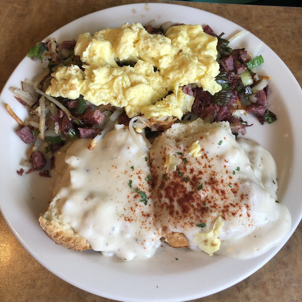 Read moreI truly appreciate the tranquil and soothing ambiance of this cafe/diner. It appears that having dessert along with breakfast is quite popular here! The food was simply delightful. However, I do have one constructive feedback to offer. The grill used for cooking the steaks could benefit from a thorough cleaning. The lingering bitter charred taste on the steak can diminish its overall enjoyment. On a positive note, the other breakfasts I've had here in the past have been exceptionally satisfying. While it may not be the most expensive breakfast I've had in Washington, it is slightly on the pricier side. We ordered three meals and beverages, and we were pleasantly full even halfway through the meal. The portion sizes exceeded our expectations, and they were certainly large enough to share. I understand that many restaurants in this area have been compelled to raise their prices, and this establishment is no exception. Nevertheless, the cost was still reasonable and appropriate for the area. I appreciate the recent renovation, although I do miss the large train muraled booths. However, there are still plenty of train-inspired elements throughout the restaurant. The highlight of my breakfast experience was the seasoned sidewinder fries and the berry blintz with lemon cream. They were...