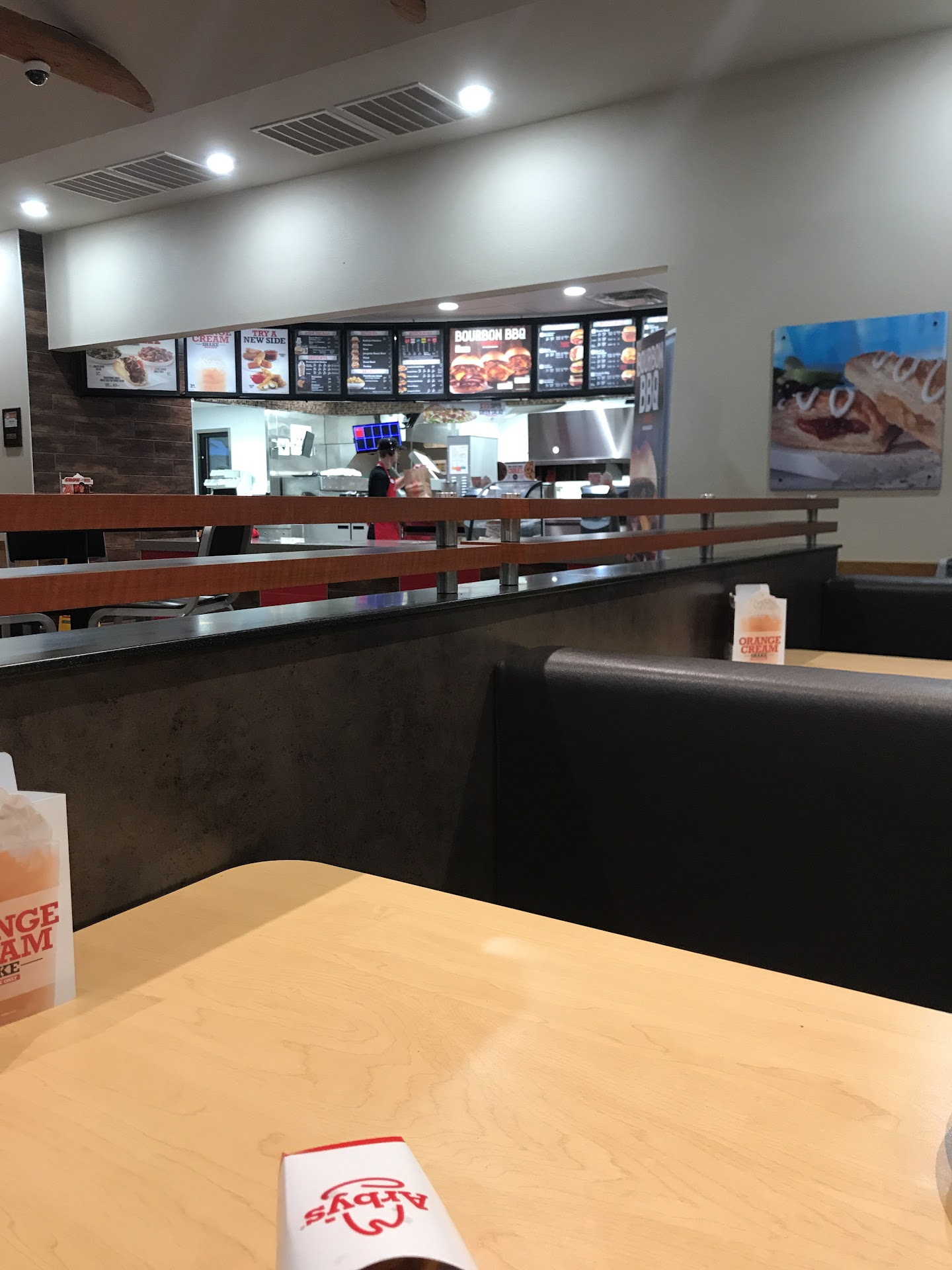 We walked in and the lady at the register had a cigarette in her hand, I think she was trying to fix the system. The guy manager was dancing behind her. Neither of them said welcome to Arby’s and sorry for the wait.