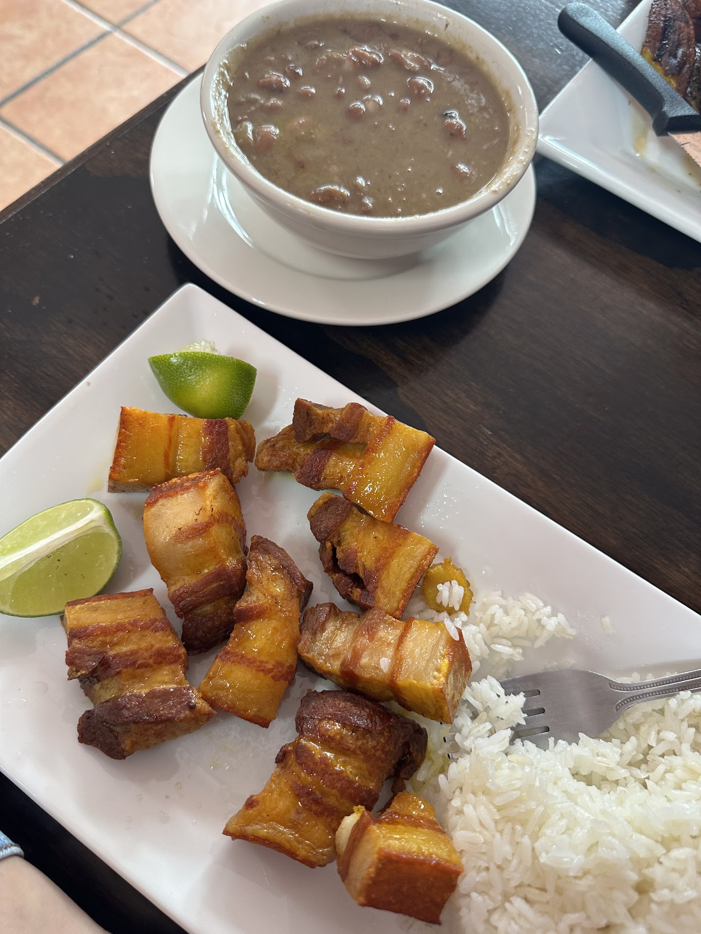 This is an inviting place with parking in the back. Went there today looking for a hearty hot soup so i ordered the sopa de costilla de res(beef rib soup) and a chicken bandejita paisa. There was a thick layer of probably canola oil floating on top of bowl so i returned the full bowl back, and still got charged. However the waitress did offer to pack it for me. The chicken breast was dry and lacked flavor in the bandeja paisa. It was not busy when i was there at around 1pm. I ordered a beef empanada while waiting for food and it was extremely delicious. Also, i ordered a guava and cheese pastry which was fantastic as well. The place was very clean and service was quick and friendly enough. Id like to give them another shot with different menu items in the future. It was quite cold inside, they should install heaters...