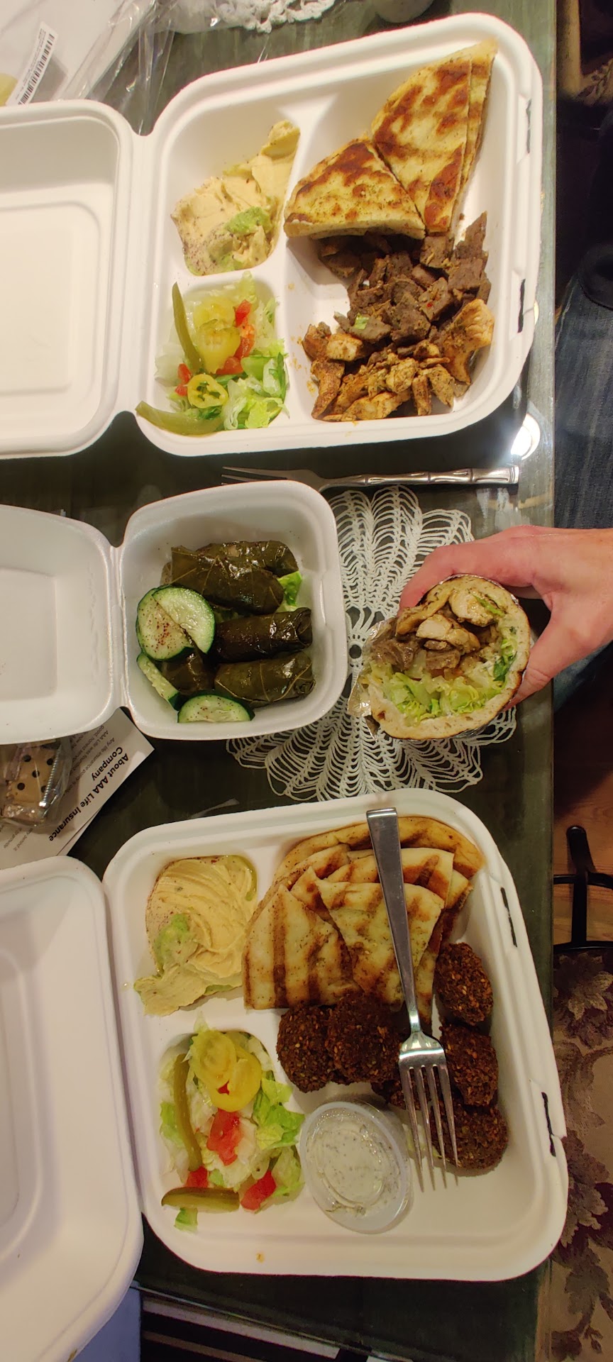 Ā Ā Ā Read moreI ordered take out - a shawafel gyro. I went to where I was camping and ate it - and figured out that it didnāt have any of the veggies except lettuce and no tzatziki sauce. The flavor of meat was good, but the sandwich was dry without all the ingredients. I realize mistakes happen and it wasnāt the end of the world, but figured they would want to know rather than me posting a bad review.