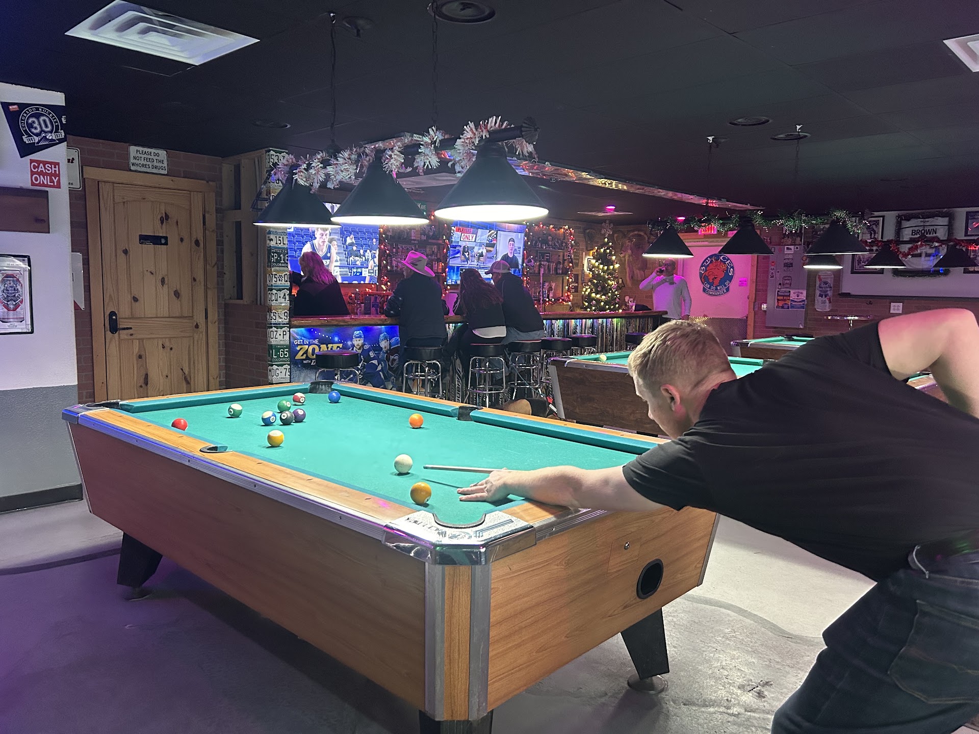 Everyone is friendly and has a good time. The pool tables are free and whether you play APA or just for fun the 3 tables turn quick.