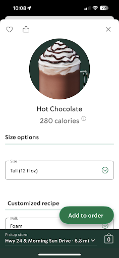 Read moreUpdate: For some reason this location is having problems. For three months, my orders have been wrong. I order through the app, so my orders are clear and made ahead of time. On several occasions, the wrong drink would be handed to me and I would have to correct it. Often, my food was forgotten. The last two orders, the drinks were wrong. Even though the sticker on the cup said latte, I was given regular coffee. Trip, after trip, being wrong, I started going to a different coffee shop.