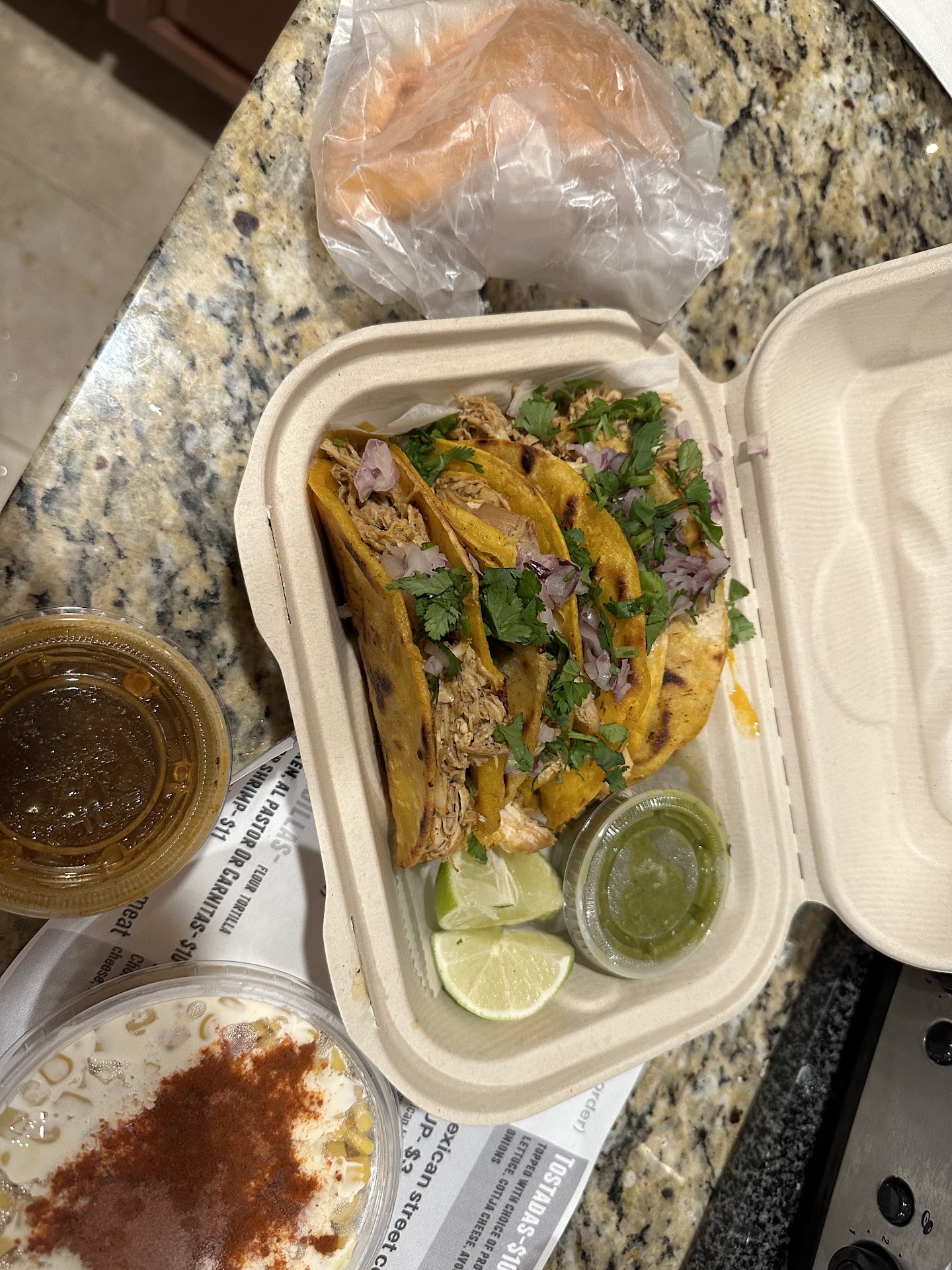 Not my favorite. Very salty, cilantro and onions had wilted. There was also a flavor in the seasoning I couldn’t get past so sorry but I’m incredibly confused about the 5 star ratings! Been to many incredible Mexican restaurants and this one certainly does not fit the category. $95 dollars spent of inedible food. The lady at the counter was very nice though!