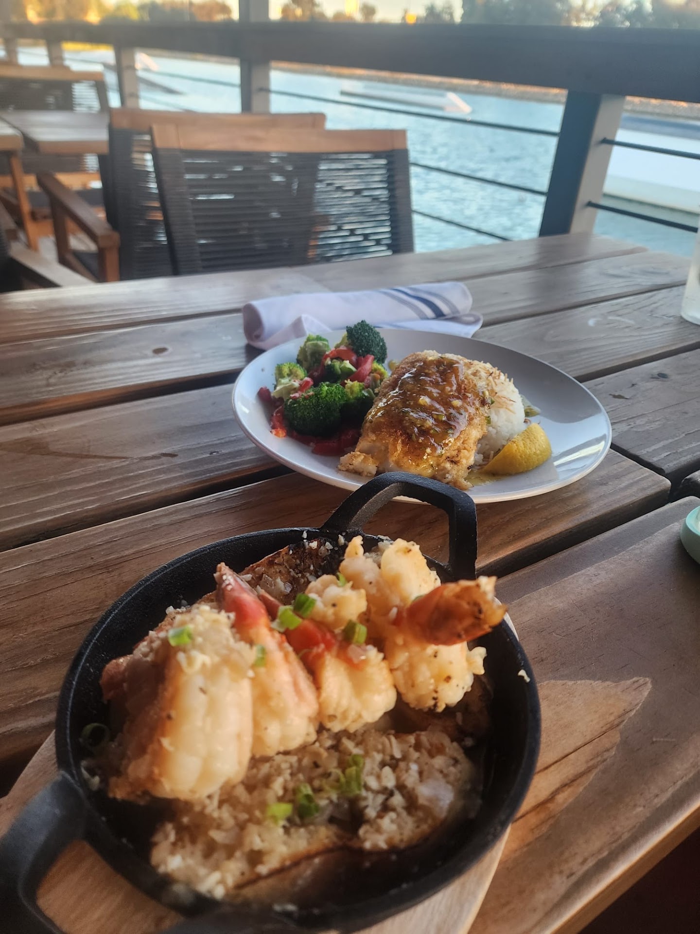 We are doing a road trip and are always looking for new places to eat and experience. I found this place on maps and the photos of the food looked amazing I didn't know it was a water park surrounding the restaurant It was a pretty amazing spot we went to. We entered and were told to sit wherever ( there were two other groups not busy at all in my opinion ) we sat down and had to get back up to get our own menus. It took asking twice and thirty minutes later just to get water. Our server just seemed distracted and spaced out we ordered drinks which also took a while. The food & drink quality was really good and almost made me forget about all the other things if the service time & quality improves this will be one of the best spots...
