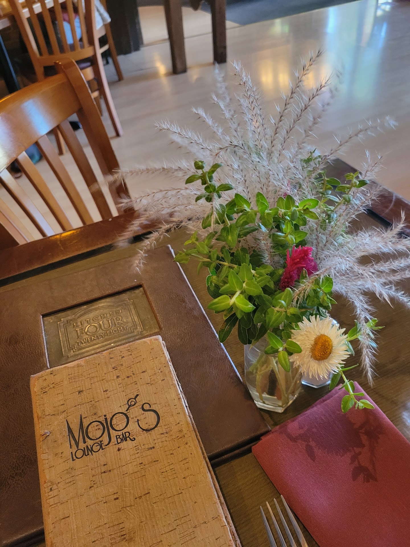 Read moreThis is the best place to eat in Woodland. From the burger to the ribeye, the bolognese to the short ribs, the salmon to the pork chop, and everything in between. They have vegan dishes too. The chefs there are amazing and the price point is low for the portions and quality of the food. You can go fine dining on the restaurant side or casual on the lounge side. Same menu. Be sure to make a reservation if you want to go fine, because the place is often full, especially on a holiday or event day. They also offer a great selection of nonalcoholic beverages. They have craft house made NA cocktails and beer including NA Guinness and Hoppy Poppy IPA for the non-drinkers like myself. Theres a really nice outside seating patio. They often have live music in the joint too. There is also a second “speakeasy style” bar on the third floor of the 1800’s historic building complete with a secret hidden bookshelf door. The third floor is only open for different functions such as private party’s, conventions, live shows, music, and it’s available for rent. There’s rumor of hosting yoga and hot yoga in the third floor too. Kitchen 428 and Mojo’s Lounge are a must see destination if you’re in Woodland. The beautiful historical building alone is worth the half a block walk off...