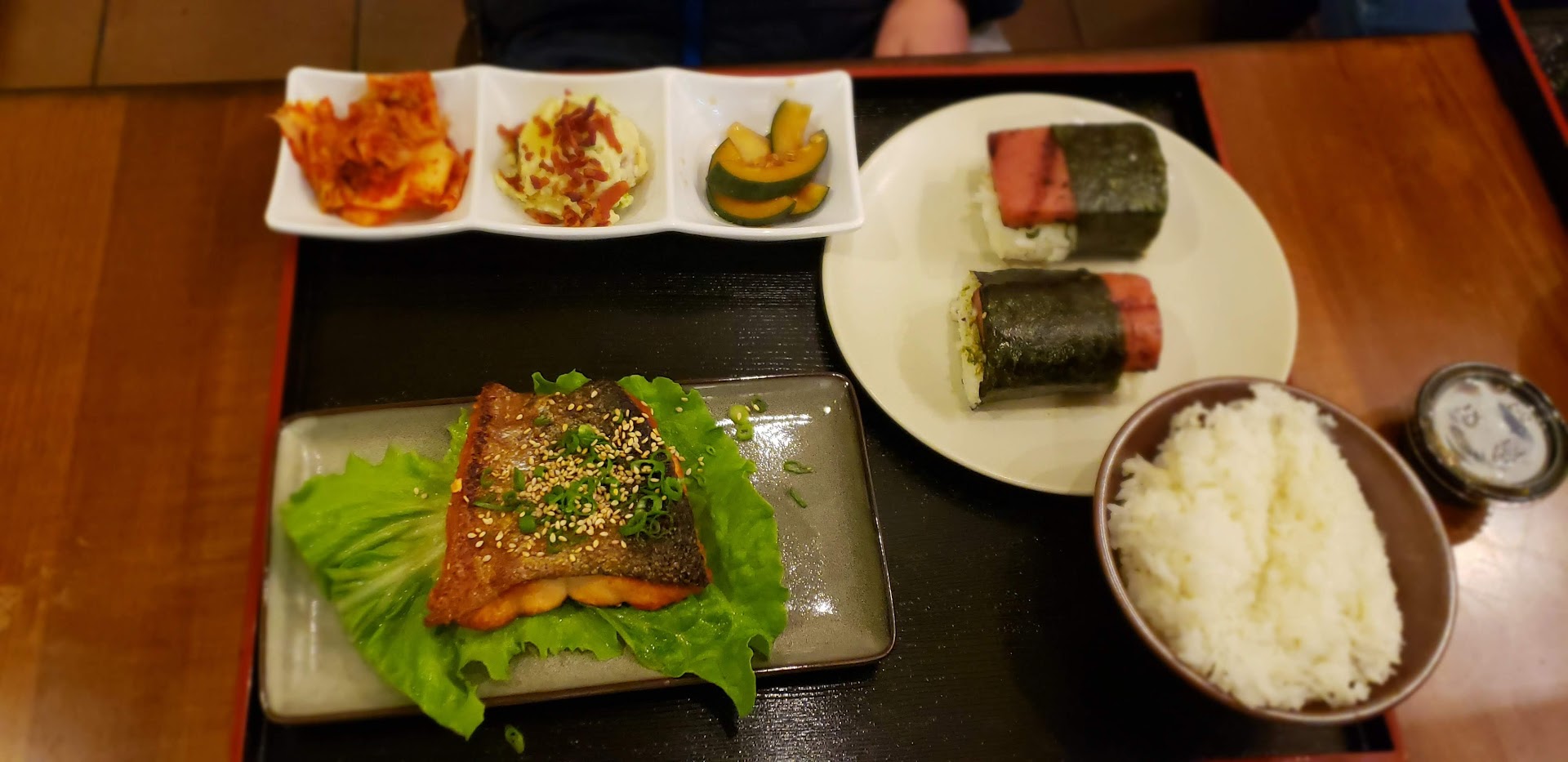 With that said, Kuji looks like a simple, counter-service restaurant with ambiance to match, but the youthful husband and wife team in the kitchen churn out huge quantities of delicious food. To understand the menu, it helps to know that chefs are Korean but worked (and met) in Hawaii, so the food is Korean (e.g. kalbi, bulgogi, japchae) served Hawaiian plate lunch-style along with some Hawaiian classics (e.g. loco moco as a special, poke bowls) and a few Japanese-Hawaiian dishes (e.g. chicken katsu, spam musubi).