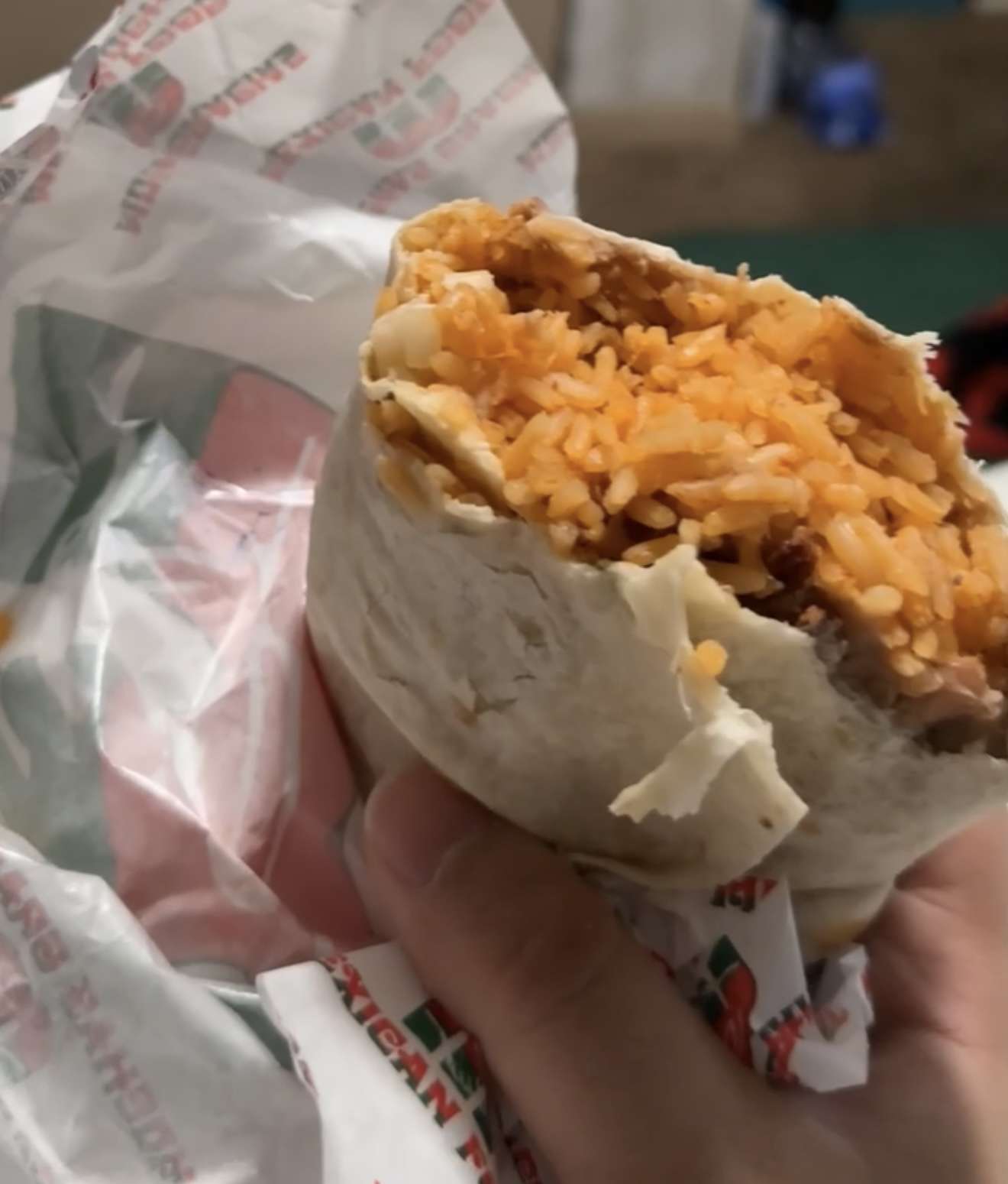 The burritos don't need be skimpy on the meat of any kind, so let's see how much shrimp is inside the better part of more than half the burrito..