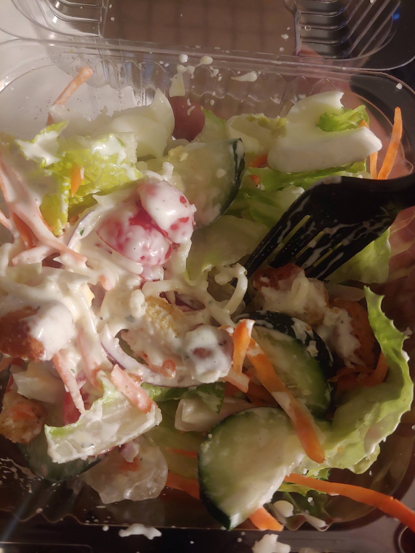 To start, the salad as soon as the server, who by the way was the cook and the cashier as well even tho there were 2 other woman walking around, smelled bad! Like a soccer player just took his sneakers and rubbed his feet on it after playing 96 minutes of game. My husband was so hungry that he didn’t even think about it and started eating it. The lettuce looked like it had been left out like a day and a half, wilted and slimey.