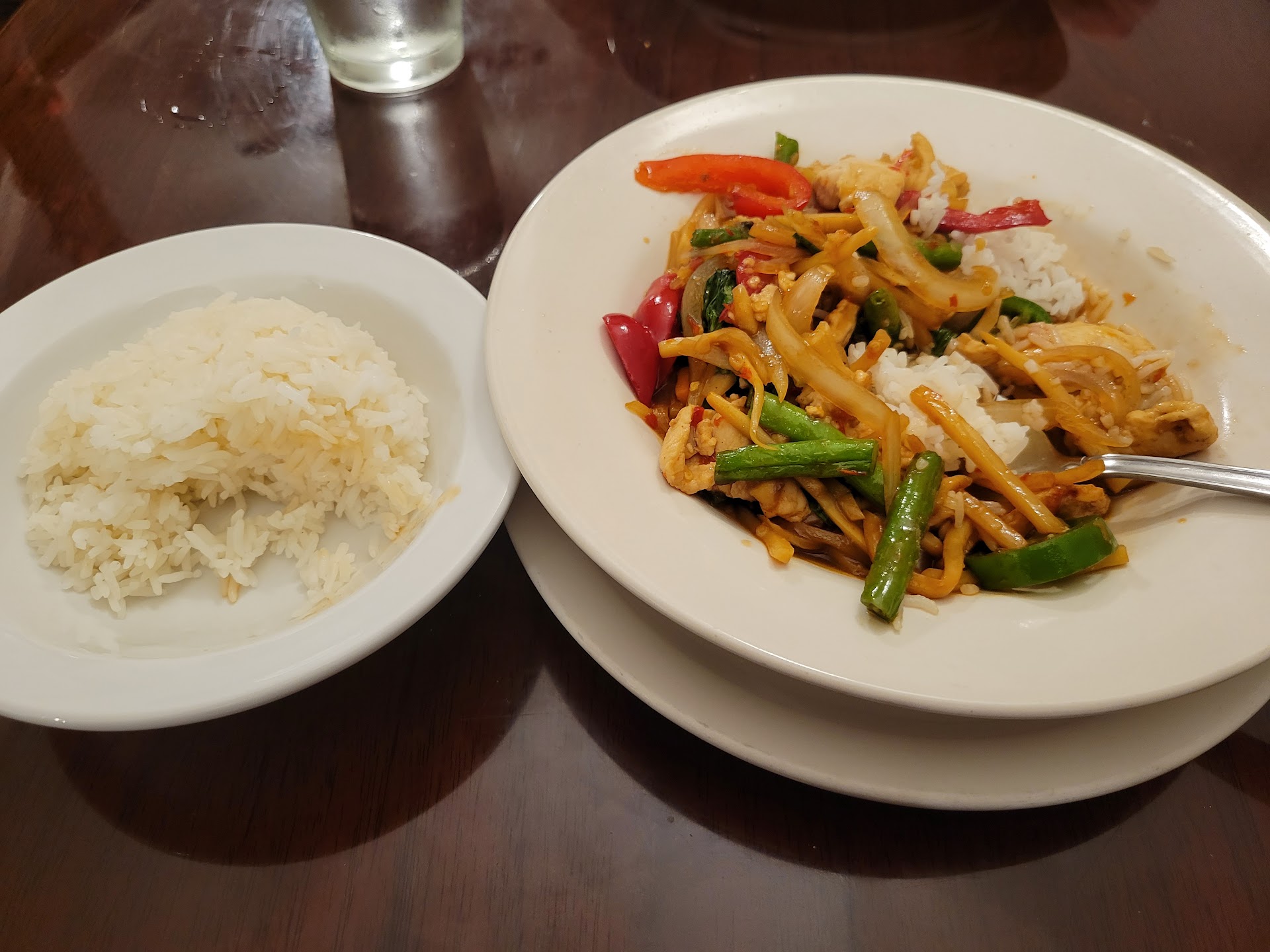 Also ordered Chicken Basil fried rice. Tasted ok, very white washed and lacking in flavor compqred to many other Thai Restaurants. Around $12.00